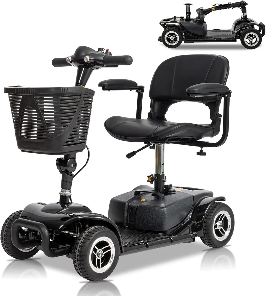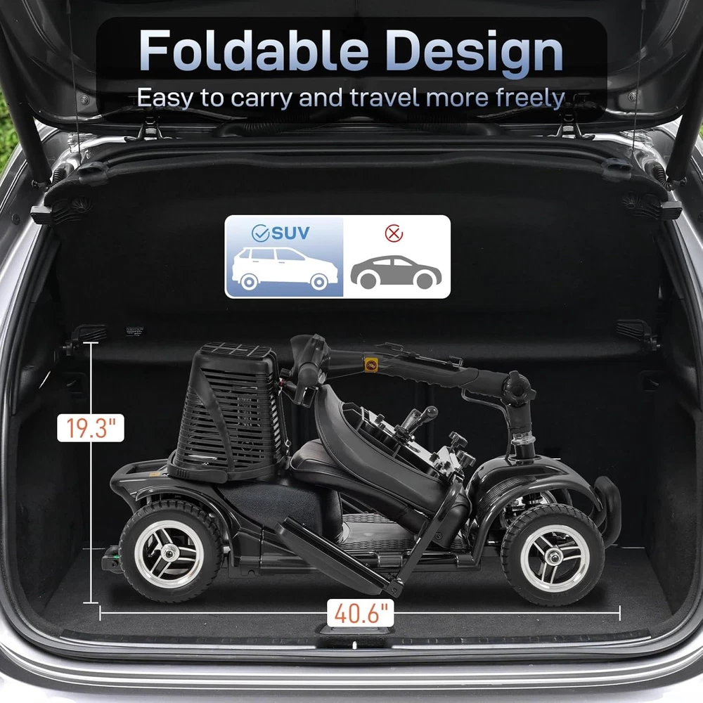 listing template VISIT OUR STORE SIGH UP FOR EMAIL New 4-Wheel Folding Electric Scooter for Seniors with LED Lights , 15° Climbing Introduction: This electric scooter is designed for most users, with a load-bearing capacity of 330LBS, the body adopts a foldable design, which is convenient for storage at home, in the trunk of the car, or for traveling. Whether it is daily commuting, going out shopping, or visiting relatives and friends, this scooter is your ideal travel partner. Specification: 1. Color : Black 2. Product Dimensions : 40.6"L x 19.6"W x 35"H 3. Item Weight : 92.6 Pounds Package Includes: 1 x 4 Wheel Mobility Scooter About this item: 【Safe and Stable】This electric scooter is designed for most users, with a load-bearing capacity of 330LBS, allowing users of different sizes to drive with peace of mind. The stable frame structure and thickened shock-absorbing tires provide excellent driving stability, allowing for smooth movement even on uneven roads. Whether it is the elderly, people with limited mobility, or users who need to spend a long time outdoors, they can all enjoy a safer and more comfortable travel experience. 【180W Strong Power】With a high-performance energy-saving motor, it can travel 15 miles on a single charge, whether it is shopping in the supermarket, walking in the park, or short trips, it can easily meet the needs. Equipped with strong climbing power, it can handle a maximum slope of 15°, suitable for various terrains such as community roads, slopes, sidewalks, etc., making travel more free. 【Ensure Safe Riding】The front high-brightness LED headlights provide a clear view at night or in low-light environments, improving driving safety. In addition, the anti-collision bumper provides additional protection in the event of an accidental collision, reducing the risk of vehicle damage. Allowing users to drive with peace of mind during the day and night, improving the overall safety factor. 【Comfortable & Adjustable】The seat cushion of our mobility scooters for the elderly is soft and breathable, and they are not easy to get tired after long-term driving. At the same time, the seat height can be adjusted and rotated to meet the needs of different scenarios; the armrests can also be adjusted to make getting on and off the vehicle easier. Whether it is a short-distance ride or a long-term ride, it can provide excellent comfort and reduce the discomfort caused by long-term sitting. 【Convenient Folding】The 4-wheel high-elasticity shock absorption system effectively absorbs ground vibrations and maintains stable driving on complex road conditions such as brick roads and country roads. The body adopts a foldable design, which is convenient for storage at home, in the trunk of the car, or for traveling. Whether it is daily commuting, going out shopping, or visiting relatives and friends, this scooter is your ideal travel partner. 【Strong and stable load-bearing capacity】 With a load-bearing capacity of 300lbs, it is suitable for users of different body shapes and ensures stable and safe driving. 【Long-lasting battery】 Equipped with a large-capacity battery, it can travel 10-20 miles on a single charge, meeting daily travel needs such as shopping, walking in the park or short trips. 【Strong power & climbing ability】 The efficient motor provides sufficient power and generally supports a climbing ability of 10°-15°, which is suitable for different terrains, including slopes and rugged roads. 【Comfortable and adjustable seat】 The ergonomically designed seat has thick cushions and supports height adjustment. The scooter is also equipped with adjustable armrests and a rotating seat for easy getting on and off. 【Safety lighting system】 Equipped with LED headlights and taillights to improve the safety of night driving and is suitable for use on urban roads. 【Stable four-wheel structure & shock absorption system】 4-wheel drive or thickened anti-skid tires improve driving stability, and equipped with a shock absorption system to effectively reduce vibration and adapt to complex road conditions. 【Easy to operate & intuitive control panel】 Equipped with a simple control panel with speed adjustment, forward/backward buttons, power display and other functions, even the elderly can operate it easily. 【Convenient folding & detachable design】 The scooter can be folded or disassembled, which is convenient for storage at home or in the trunk of the car, and is easy to carry for travel or short trips. 【Safety protection design】 With anti-collision bumper and anti-rollover design, the model is also equipped with an electromagnetic brake system to ensure driving safety. You might like this more>> Portable Princess Castle Play House Blue Large Kids Play Tent $23.79 Double Shoe Rack Closet Shelf Storage Organizer $19.49 Oil Painting Easel Sketch Box Portable Folding $57.49 FCH L-Shaped Corner Computer Desk Home Office Desk $109.99 10 Tier Durable Storage Organizer 30 Pair Shoe Tower $18.99 24 Slots PU Leather Wrist Watch Box Display Case Organizer $16.99 Shipping Policy 1. Ship from New Jersey by Standard Int'l Shipping, and only to VERIFIED PAYPAL ADDRESS . 2.International Buyers – Please Note: a. Import duties, taxes and charges are not included in the item price or shipping charges. These charges are the buyer’s responsibility. b. Please check with your country’s customs office to determine what these additional costs will be prior to bidding/buying. 3. Please check your shipping address carefully before checkout, it can't be changed if order completed. 4. All items will be shipped to buyer's ebay address. Before you pay, please make sure your address in ebay match the address you would like us to ship to. 5. Ship within 1 business day once payment completed. We do not ship on weekends or public holidays. 6. Item normally will arrive in 10-15 business days but sometimes goes to 25-30 business days for remote area. That is depen