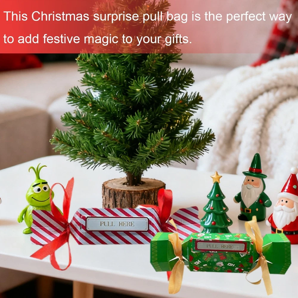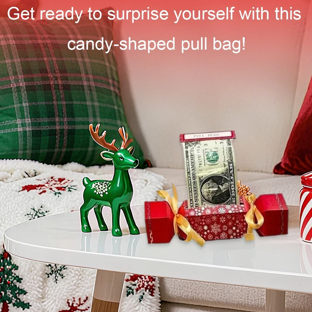 Product Size: 20.5*7.5cm Product Color: Multicolor Product Material: Cardboard Packaging: OPP Description: Holiday Surprise: This Christmas surprise pull bag is the perfect way to add holiday magic to your gifts. Its candy-like design and strings of cute banknotes are sure to bring a smile to your friends' faces. Get ready to surprise your loved ones with this candy-shaped pull bag! Cash Surprise: Each pull bag contains a transparent pouch, allowing you to easily withdraw a certain amount of cash to surprise your recipient. This pull bag is shaped like holiday candy and comes in four bright colors. Cash Gift Bag: Our Christmas surprise pull bag also functions as a stylish gift bag, securely storing cash gifts. Its innovative design makes giving cash surprises fun and interactive. High Quality and Durable: This Christmas surprise pull bag is meticulously crafted for durability. Its sturdy construction ensures a smooth and reliable pull mechanism, keeping your surprise intact until the very end. Versatile and fun: Our Christmas surprise money pouches are not only great gifts, but also perfect for party favors or decorations. You can use them as a unique touch to your Christmas party or as a creative way to save money during the holidays. A must-have for anyone looking to add a touch of surprise to their Christmas celebrations. Package List: 4 Christmas Surprise Money Pouches