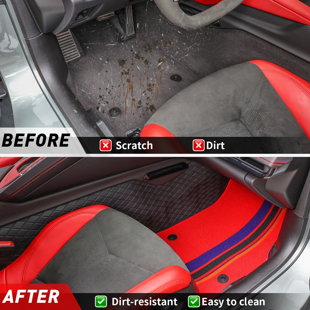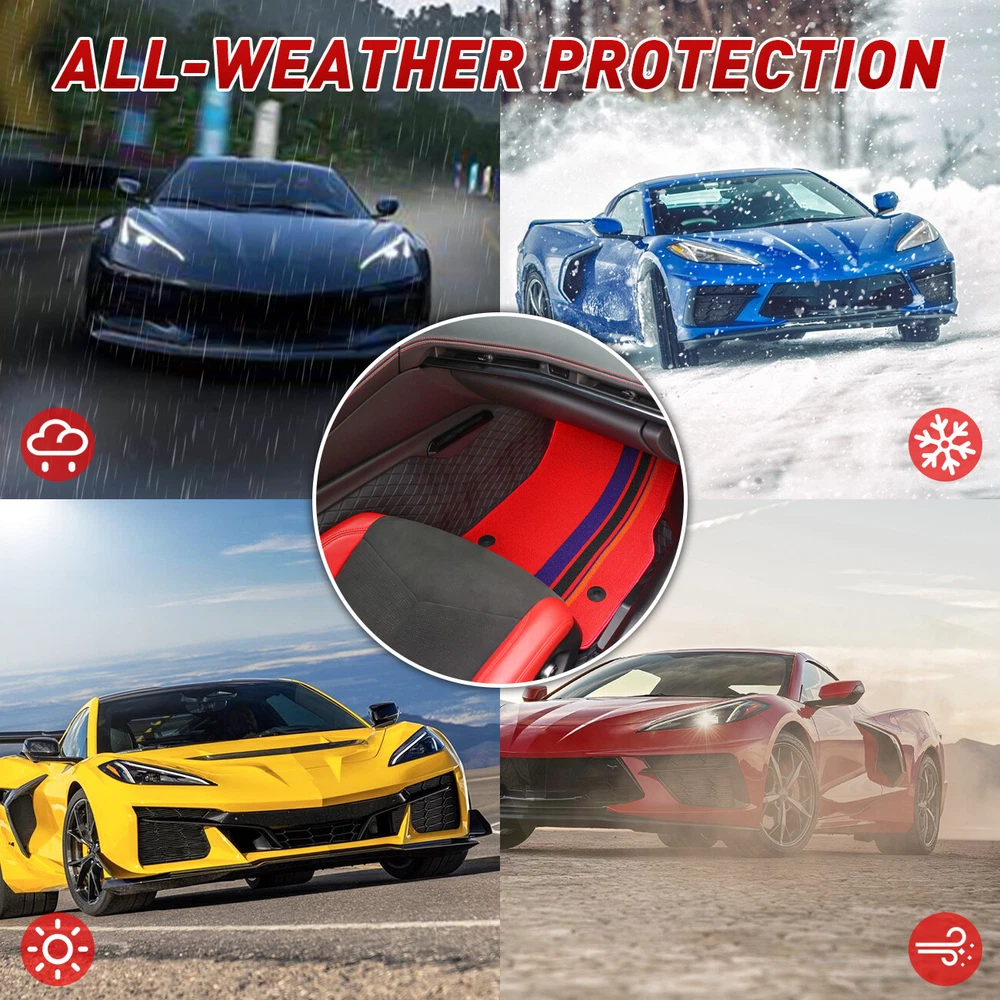 4X Floor Mats All Weather Tricolor Carpet for Corvette C8 Stingray Z51 Z06 2020-2024 Features 【Fitment】This Floor Mats Floor liners fit for 2020-2024 Chevrolet Corvette C8. 【Material】The black foot mat made of PU leather combines waterproof, anti slip, and wear-resistant properties. The red foot mat are made of nylon material, which is a suitable choice for all seasons due to its excellent wear resistance, tear resistance, and fatigue resistance. 【Function】These foot mat can effectively prevent foreign impurities such as dust, dirt, and rainwater from entering the car, ensuring the cleanliness and hygiene of the interior space. 【Features】Specially designed for cars, the foot mat use wear-resistant materials and combined with special textures for easy daily maintenance and upkeep. Especially the PU leather foot mat are easy to clean and can effectively protect the cleanliness of the original car suede surface. In addition, the car floor mat has been treated with special technology, showing the characteristics of wear resistance, anti-aging, and long-term durability. 【Installation】 Easy to install, just align with the hole position for installation. You can easily complete the installation without any tutorials. Specification Condition: New Colour: Black and Red Material: PU leather、Nylon Fitment For Corvette C8 Coupe 2020-2024 Package Included 2* Black Full Floor Mats 2* Red Foot Pad Declaration ⭐ This item is not a licensed Honda/Yamaha/Suzuki/Polaris/Can Am/Kawasaki/Arctic Cat/Jeep/Kymco/John Deere Gator/Bobcat/Mercedes Benz/BMW/Porsche/Toyota/Dodge/Harley Davidson/ product . ⭐ We do not claim ownership and have no affiliation with above-mentioned brands, copyrights and trademarks belong to the respective owners. ⭐ Unless specifically identified as such, our use of third party trademarks does not indicate any relationship, sponsorship, or endorsement between us and above-mentioned brands. ⭐ Any references by us (or company name) (or the seller) to third party trademarks is to identify the corresponding third party's goods and shall be considered nominative fair use under the trademark law. Payment ⭐ We accept credit, debit,discover Visa and PayPal,among other locally accepted forms of payment. ⭐ Please pay as soon as possible after odering , as that we can ship your item to you sooner! ⭐ Refund will be issue back to the account which paid from,please be know that. Delivery details ⭐ We offer FREE shipping on all orders!And offer world wide Shipping . ⭐ We ship within Three business days of payment, usually sooner .(work off on weekend and Holidays). ⭐ Delivery is typically within 8-21 days,the delivery date varies by shipping destinations, and may take a little longer during holiday peak season or encounter force majeure. Returns Accepted ⭐ This product comes with 30-day returns or replacment . ⭐ If the item is be damaged, defective, or not as described in the listing, We will provide you with a replacement or a full refund. ⭐ Any product you return must be in the same condition you received it and in the original packaging. Please keep the receipt. Quality Assurance ⭐ If you are satisfied with our item,could you kindly give us 5 stars feedback?Thanks a lot. ⭐ If there are any problems when you received the package, please feel free to message us, we will definitely give you a satisfying solution , please don't leave neutral or negative feedback without any communication.Thank you for your cooperation! Contact US ⭐ We are manufactuer ,the warehouse was located in US/China ,DO NOT worry about the shipping time. ⭐ Customer satisfaction is very important to us. ⭐ If you meet any question,Please do not hesitate to contact us via eBay message,we will reply you ASAP. ⭐ Our Working Time: 8 pm - 5 am(From Monday to Saturday,Not working on statutory holidays) . QUALITY AUTO PARTS