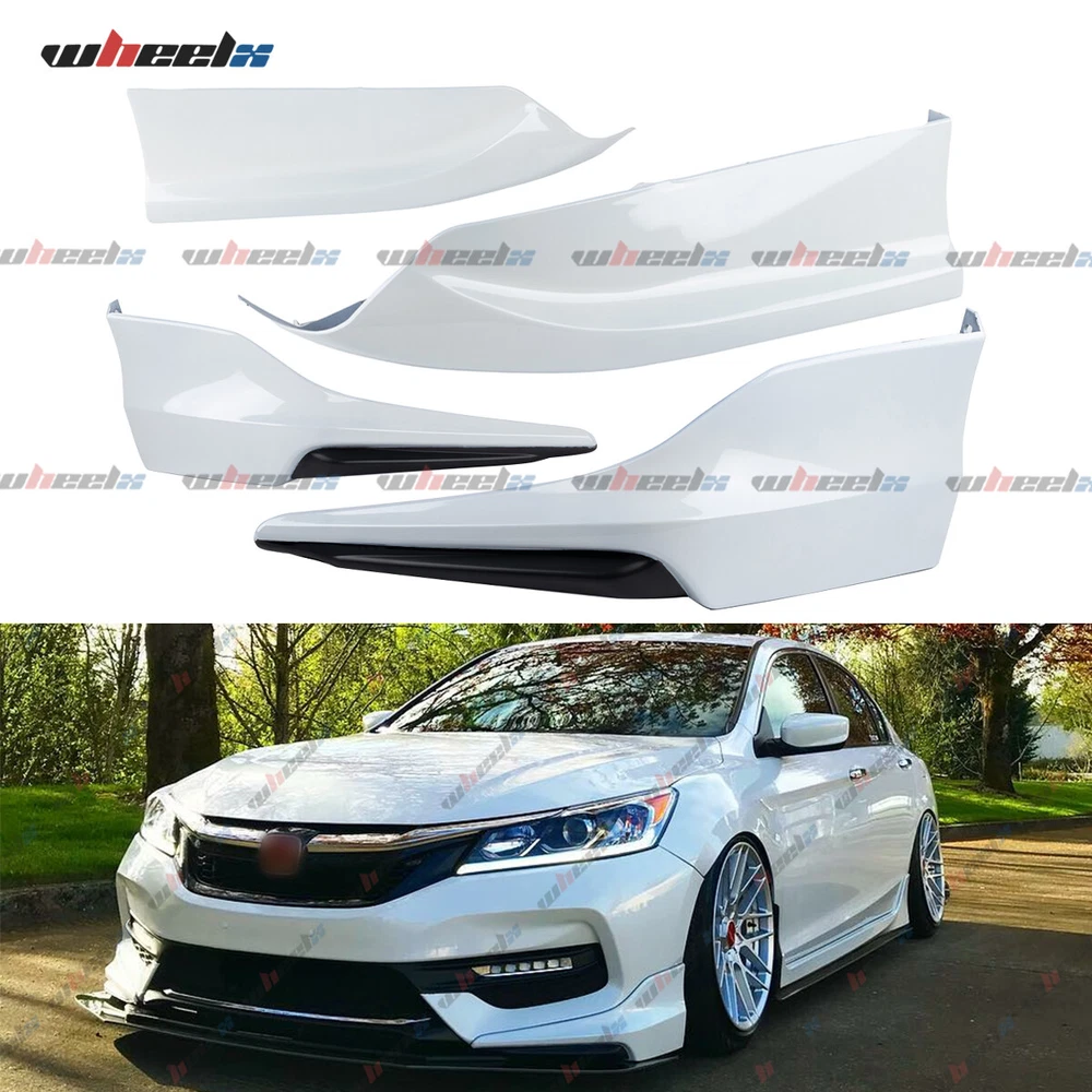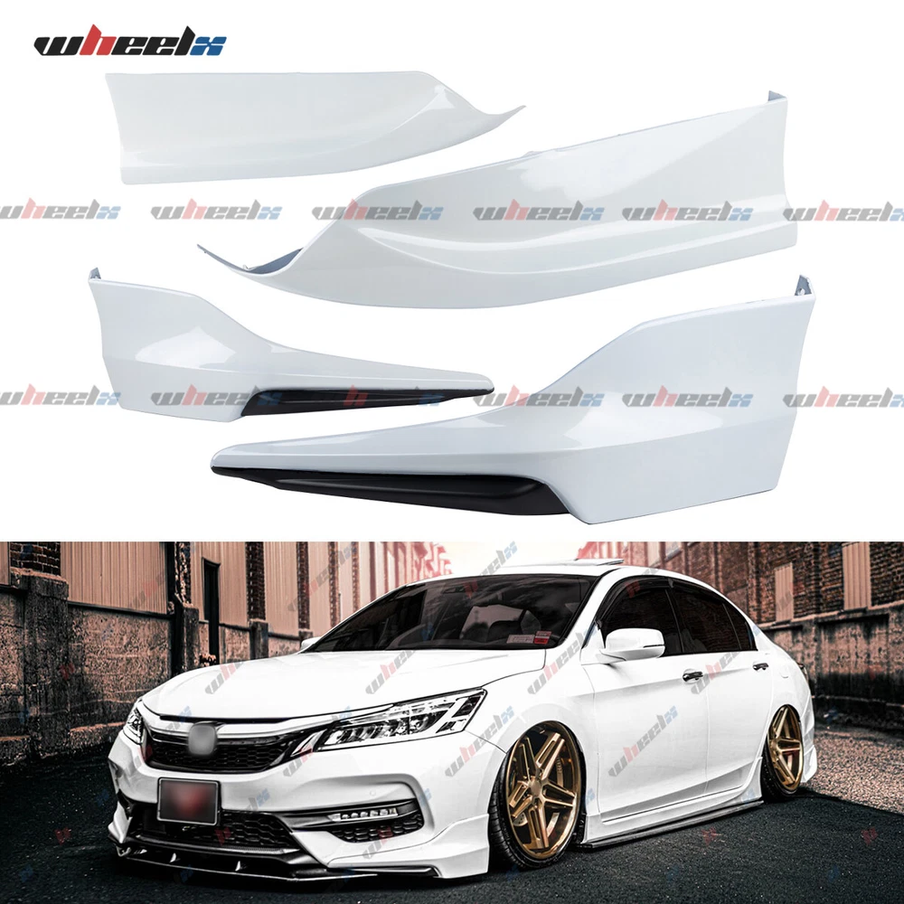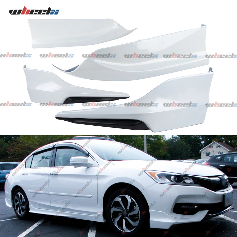 4X For 2016-2017 Accord 4DR Painted White Front Rear Bumper Lip Splitter Spoiler