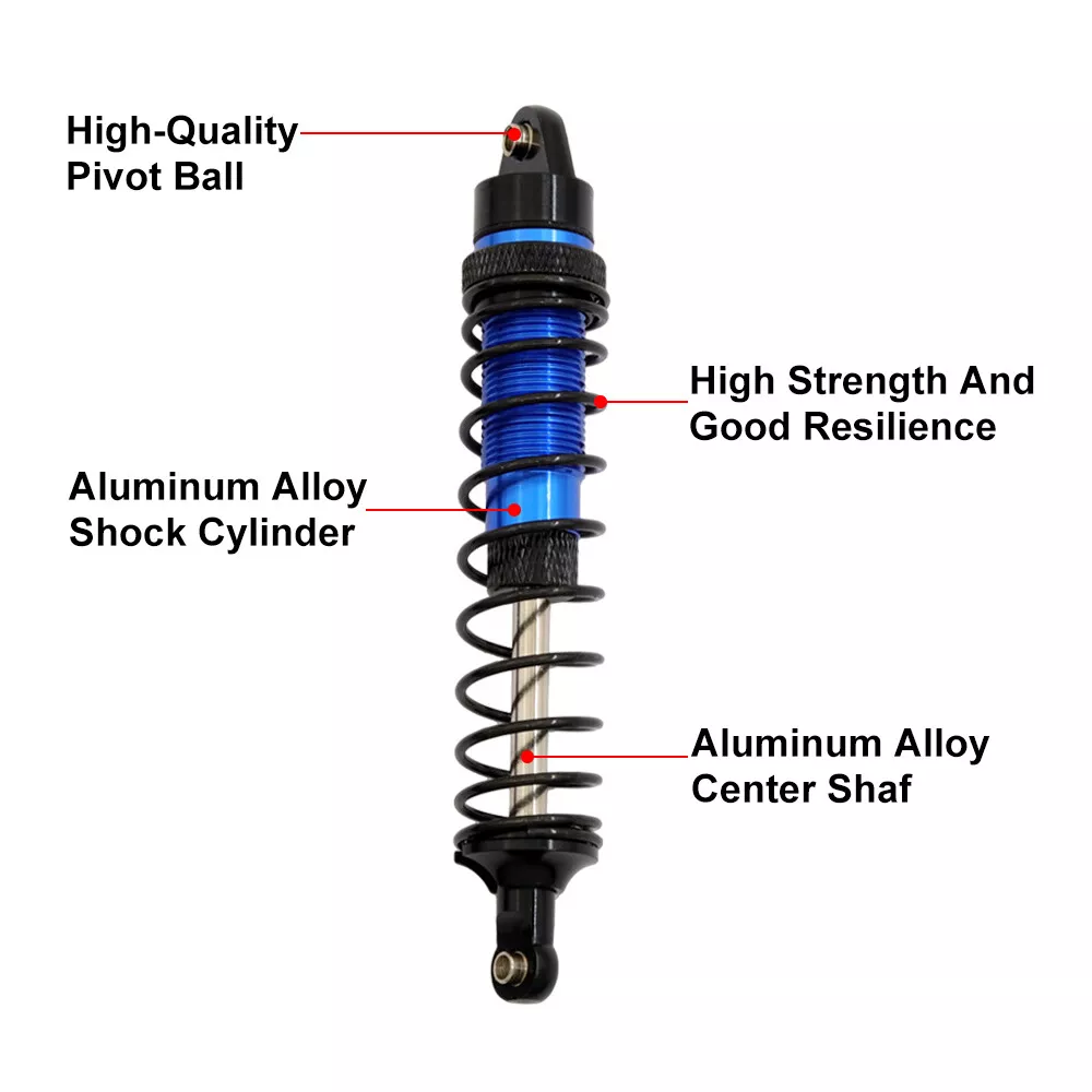 9IMOD 4PCS Shock Absorber 119/134mm Front&Rear Metal Hydraulic Shock Absorber RC Car Upgrade Parts for Traxxas Slash 4x4 1:10 ARRMA 727 Mountain Mouse Features: 1. Made of quality aluminum alloy and plastic material, wear resistant, proof, high strength, and long service life. 2. Easy to install and remove, direct replacement of old or damaged one, quick height adjustment and ability to adjust preload. 3. Excellent shock absorption provides a balanced driving experience and reduces vibrations due to rough road conditions. 4. Independent spring design, which can ensure the shock absorption effect and improve the stability of the remote control car. 5. A high quality upgrade part to improve the appearance of your model car. 6. suit for Traxxas Slash4x4 Dead Mouse Short Card Metal Parts Shocks 727 Mountain Mouse,1:10 ARRMA Shengtang Boulder Granite Voltax Little Typhoon. Description: The package contains 4pcs hydraulic shock absorber. Reasonable design makes it easy to install and disassemble,This RC Shock absorber are the best spare choice for your rc cars. it is a replacement parts for damaged or old. Specifications: Name: Shock Absorber Material: Aluminum Optional Color: Red/Blue Quantity: 4Pcs Front Total Length: 119mm Rear Total Length: 134mm Front Hole Center to Hole Center: 109mm Rear Hole Center to Hole Center: 124mm Hole diameter: M3 Package contents: 2 *Front Shock Absorber 2 *Rear Shock Absorber Note: Only the above package content, other products are not included. 1.Due to the difference between different monitors,the picture may not reflect the actual color of the item. We guarantee the style is the same as shown in the pictures. 2.Due to the manual measurement and different measurement methods, please allow 1-3mm deviation.Thanks! Before purchase: 1.All the goods are ready stock, we will arrange the shipment at once if we receive the order. 2.Please read the item description, if you have any question, do not hesitate to contact us. 3.No warranty,if you receive a defect item,please contact us at once with item picture. 4.Use the vouchers for more saving. After purchase: 1.If you are satisfied,please express your use feeling. 2.Please contact us before you are going to give us bad review. We are helpful and will solve the problems. If you receive a defect item,please contact us at once with item picture or video.