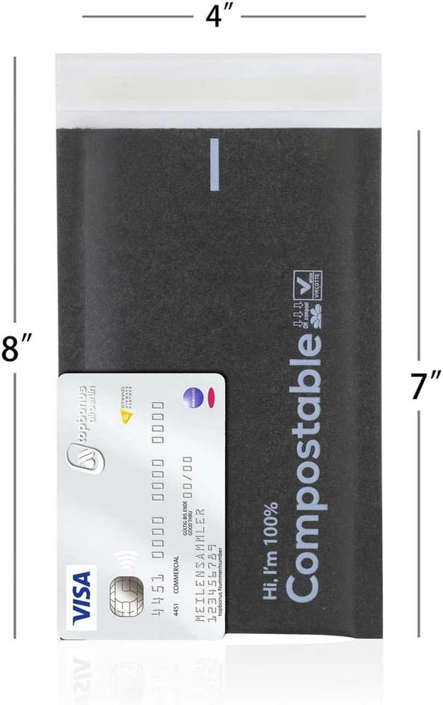 Store New Arrivals Add to Favorite View Feedback Contact 4X8 100% Biodegradable Bubble Mailers,25 Count Kraft Black #000 Compostable Padded Packaging Wrap Envelopes Pouches Eco Friendly Self Seal Bags Description Size Name 4x8'' 25PCS Number of Items 25 Closure Type Self-Seal Color Black Material Paper, Plastic Material Type Paper, Plastic Shape Rectangular Apparel Closure Type Self-Seal Style Name Bubble Additional Features Waterproof, Padded, Self Adhesive Item Dimensions L x W 9"L x 6"W Size 4x8'' 25PCS 100% Biodegradable: our bubble cushioning wrap is made of PBAT and modified corn starch. The envelope is made of kraft. These poly bubble mailers are certified by BPI and OK compost, and meet the standards of ASTM 6400 and EN13432. They are non-toxic , BPA-free and generate less CO2 than traditional plastic. Improve Your Corporate Image: your customers will be surprised and relieved to open a bubble mailer made of plant-based eco materials. It will speak volumes about your sense of social responsibility and the high quality of your brand, and help you build a lasting impression with your customers. Each bubble envelope contains a four-season self-sealing adhesive strip. The strong stickiness prevents your items from being tampered with during transportation, even in extreme hot or cold weather. Please note: store these compostable padded shipping envelopes in a cool, dry location and avoid direct sunlight. The shelf life is 12 months. More Sturdy than Traditional Mailers: they are tear-resistant, puncture-resistant, and waterproof. Due to the strong self-adhesive glue, the recycled mailer cannot be opened once sealed before the whole packaging bag is torn up. You can count on our biodegradable padded poly mailers to keep your packages safe until they reach their destination. Suitable for Various Purposes: these padded packaging envelopes have a multi-purpose use, from offices to homes, shops, and schools. The anti-water paper surface easily accepts ink, stamps, and labels. ABOUT US We offer the best prices around on high quality products. Our E-store includes media such as books, movies, music and games while offering electronics, toys, sporting apparel, clothing, tools, general home, garden items and more. SHIPPING We are always working hard to ensure your package arrives as soon as possible. Please understand that some factors like weather, high postal traffic, and the performance of shipping companies are outside of our control. We offer free shipping to the lower 48 states and ship within 2 business days of payment, usually sooner. We do not accept P.O. Boxes. Please provide a physical address. For shipping outside of the continental USA, we only use eBay's Global Shipping Program.The item is shipped to KY and then sent to the rest of the world. International customers are responsible for all duties and taxes. Continue to check out in order to calculate costs for shipping the item to your country. Messages regarding eBay's Global Shipping Program MUST be directed at eBay EXCLUSIVELY. RETURNS We offer a 30-Day Return Policy on items which you are not completely satisfied with. You have the option for a full-refund or an exchange of the item. No returns are available on items shipped outside of the USA. PAYMENT We accept PayPal. CONTACT US This page content is yet to come Please ad us to your favorite seller and visit again later Thank You CUSTOMER SATISFACTION We try our very best to make sure every customer is completely satisfied. If there's a problem, message us! We're happy to help. WE ACCEPT Copyright © 2021 AutoDS. | All Rights Reserved