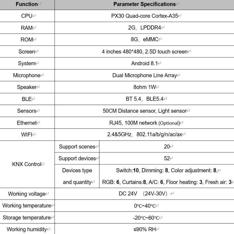 Welcome to our store ● Standard Products: 3.5'', 4'', 6'', 8'', and 10'' Wall-mount Screen. ● Open Android Version (PoE): Supports installing customer's firmware, software, and modules like Zigbee, Mesh, Z-wave, etc. ● KNX Version: It can connect to different KNX buses to control KNX products and scenes. ● Customization: We can provide complete hardware solutions, from structure design, hardware design to complete screen. 4-inch LCD, 2.5D full screen, dual array microphone noise reduction, light distance sensor, 1W speaker. Universal 86-type panel size, wall-mounted concealed installation, easy installation, no need to modify the wall. KNX bus control can realize the control of switches, lights, curtains, air conditioners, fans, and other smart devices. Smart home interconnection, custom scene mode, touch the panel to wake up, and quickly switch scene modes. Support one-click microphone ban function to prevent user privacy leakage.