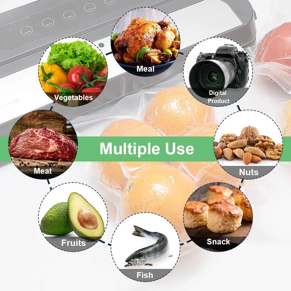 Vacuum Sealer Bags and Rolls (Always the Same Fresh) Universal precut bags and rolls easily vacuumed by any brand vacuum sealers. Food vac bags block oxygen and moisture. Embossed air-removal channels increase suction for maximum freshness. more than 5 times longer freezer storage time, locking in freshness, flavor and nutritional value - no freezer burn! Vacuum Sealer Bags Rolls Help Food Lock Freshness, Flavor and Nutrition inside!! Key Feature of Food Sealer Bags and Rolls: ◆Perfect for Sous Vide Cooking ◆Designed for Maximum Air Removal ◆Petended High Speed Suction Channels ◆Perfect for Storage, Meal Prep and Sous Vide ◆Bags and Rolls are Easy & Convenient to Use! ◆One for All ,Works with All Clamp Style Vacuum Sealers ◆Commercial Grade Rolls and Pre-cut Bags with Great Value ◆BPA Free,Cook,Freezable,Dishwasher,Microwave,and Boilable Safe ◆Keep Food Fresh up to 5xLonger, Keep Food Shelf Life More than 3-6Times Longer Benefit from Vacuum Food Sealer Bags Rolls: ◆BPA Free ◆Cook Safe ◆Freezable Safe ◆Microwave Safe ◆Dishwasher Safe ◆Universal Design ◆Boilable-Great for Sous Vide ◆Airtight and Anti Freezer Burn Advantage of Food Sealer Bags and Rolls ◆After Vacuum Sealing,You Will also Create Extra Space in Your Fridge,Space Saver! ◆Sous Vide Cooking and Marinate Ingredients Together for Many People,Time Saving! ◆Buying the Food in Bulk and Properly Storing it with Vacuum Food Bags,Money Saving and Enjoy More Life! Universal Design:Compatible with All Types Vacuum Sealer Machines,Designed for Use with all Vacuum Sealer Machine Long Term Preservation:Extend Food Shelf Life 3-6 Times Longer,Keep Freshness,Nutrition and Flavor in Your Food.Eliminates Freezer Burn and Dehydration,Air and Water Proof Material Prevents Leaking Multiple Uses:Extra Storage When Buying Food in Bulk,Preparing to Save More Time Throughout the Week,Extending Food Shelf Life 3 to 5 Times Space Saver:Say Goodbye to Cluttered and Unorganized Refrigerators and Freezers,Easily Identify Different Foods with the Clear Vacuum Food Sealer Bags and Save Space by Removing Air for Even Easier Storage Food Safe Material:Heavy Duty and Puncture Prevention,Designed for Maximum Air Removal,Designed with Food Grade PA+PE Material,4mil Front Panel and 8mil Textured or Embossed Back Panel for Maximum Freshness