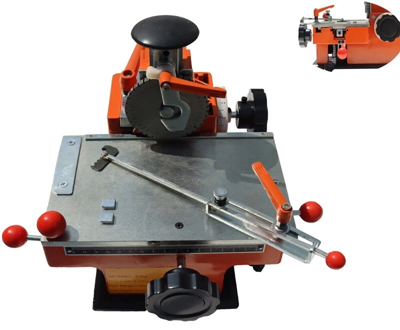 4mm Font Semi-automatic Metal Nameplate Marking Machine w/Fixture Sheet Embosser Print Range 170mmX130mm Parameters: Net Weight:8.5kg Print Depth:0.1mm-0.3mm Print Range:170mmX130mm Font Height:2mm-6mm(Optional) Size:12.6in*11.8in*9.9in Platform Size:6.7in*5.3in Scope Of Application:: This semi-automatic sheet emboss on all types of aluminum, copper, stainless steel, plastic tag for mechanical, electrical, pumps, valves, automobiles, motorcycles, electrical appliances. It embosses variable parameters: such as dog tag, specific model, date, batch number, serial number, serial number and so on. How to use: 1. How to place the nameplate: Place the nameplate on the upper left corner of the workbench, and fix it with a nameplate clamp or magnetic steel so that the nameplate is not loose. 2. The loading and unloading of the letter wheel: Turn the handle and open the pressing plate to quickly replace the letter wheel. 3. Printing and starting position adjustment: first measure the row spacing position of the nameplate with a steel ruler, then place the nameplate on the upper left corner of the workbench, adjust the fixed fixture, switch the clutch switch handle (disconnected state), and coordinate the rotation of the row spacing handwheel and Move the hand wheel on the table, move the longitudinal head to the printing starting position (the scale wheel shows the position of the line spacing), lightly lock the line spacing handle, switch the clutch handle, press the feed handle, and turn the word spacing handwheel at the same time, adjust the self-spacing, and rotate the characters The code wheel aligns the characters to be printed with the concave notch, taps the rubber head with the palm to type a character, presses the feed handle, moves one grid, and achieves continuous printing with the same action operation. Notice: 1.Font size: 2 mm,3mm, 4mm, 5mm, 6mm(This item Font size is 4MM,if you need other size,please tell us) 2.The external force (hand pressure or a rubber hammer) will emboss letters or numbers on the metal plate with a certain depth (0.1 ~ 0.3mm deep). Its stepless adjustment agent will adjust the embosser position, word spacing, and line spacing. The character heights can be adjusted by changing different. Different letters and numbers can be easily changed by turning around the plate. 3.Maximum label size: 170*130mm(Tie rod clamps can only be used within the specifications of the square nameplate <100mm*50mm, and other specifications should be fixed with magnetic steel.) 4.Print characters: uppercase letters, digits, and simple symbols 5.Print speed: about 2-4 characters / 10 seconds 6.Printing content including: A B C D E F G H I J K L M N O P Q R S T UV W X Y Z? 123456789 . x / - Item Include: Item# Description QTY Unit Note 211001 Semi-Automatic Sheet Embosser 1 set This item Font size is 4MM On Jul 11, 2023 at 23:46:57 PDT, seller added the following information: