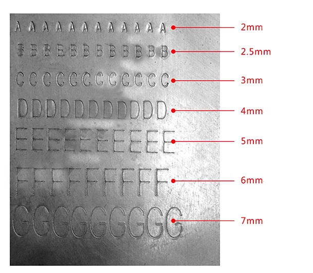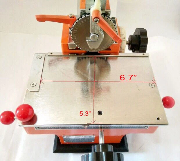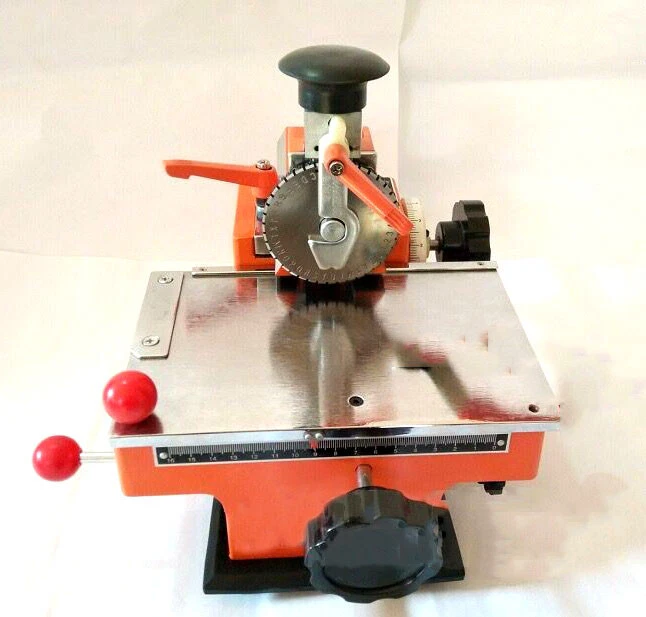 Semi-automatic Nameplate Marking Machine 4mm wheel Net Weight:8.5kg Print Depth:0.1mm-0.3mm Print Range:170mmX130mm Font Height:2mm-6mm(Optional) Machine Size:12.6x11.8x9.9 in Platform Size:6.7x5.3 in Typing Speed:2-4 characters/10 seconds Scope Of Application: This semi-automatic sheet emboss on all types of aluminum, copper, stainless steel, plastic tag for mechanical, electrical, pumps, valves, automobiles, motorcycles, electrical appliances. It embosses variable parameters: such as dog tag, specific model, date, batch number, serial number, serial number and so on. How to use: 1. How to place the nameplate: Place the nameplate on the upper left corner of the workbench, and fix it with a nameplate clamp or magnetic steel so that the nameplate is not loose. 2. The loading and unloading of the letter wheel: Turn the handle and open the pressing plate to quickly replace the letter wheel. 3. Printing and starting position adjustment: first measure the row spacing position of the nameplate with a steel ruler, then place the nameplate on the upper left corner of the workbench, adjust the fixed fixture, switch the clutch switch handle (disconnected state), and coordinate the rotation of the row spacing hand wheel and Move the hand wheel on the table, move the longitudinal head to the printing starting position (the scale wheel shows the position of the line spacing), lightly lock the line spacing handle, switch the clutch handle, press the feed handle, and turn the word spacing hand wheel at the same time, adjust the self-spacing, and rotate the characters The code wheel aligns the characters to be printed with the concave notch, taps the rubber head with the palm to type a character, presses the feed handle, moves one grid, and achieves continuous printing with the same action operation. Notice: 1.Font size: 2 mm,3mm, 4mm, 5mm, 6mm(This item Font size is 4MM,if you need other size, please tell us) 2.The external force (hand pressure or a rubber hammer) will emboss letters or numbers on the metal plate with a certain depth (0.1 ~ 0.3mm deep). Its stepless adjustment agent will adjust the embosser position, word spacing, and line spacing. The character heights can be adjusted by changing different. Different letters and numbers can be easily changed by turning around the plate. 3.Maximum label size: 170*130mm(Tie rod clamps can only be used within the specifications of the square nameplate <100mm*50mm, and other specifications should be fixed with magnetic steel.) 4.Print characters: uppercase letters, digits, and simple symbols 5.Printing content including: A B C D E F G H I J K L M N O P Q R S T UV W X Y Z? 123456789 . x / - Item Include: 211001 Semi-Automatic Sheet Embosser Font size is 4MM