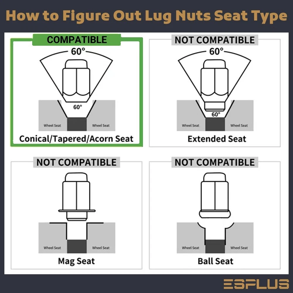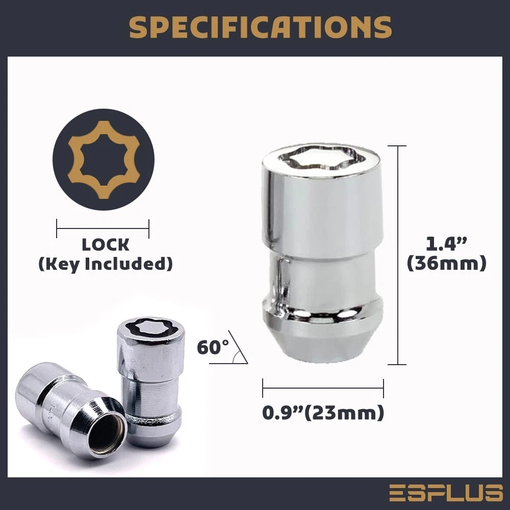 Store Home | Hot Products | Hot Deals | Suscribe for More | Customer Feedbacks | Contact us Categories Universal Lug Nuts OEM Lug Nuts Wheel Locks Conical Seat Lug Bolts Ball Seat Lug Bolts Hub Centric Spacers 4 Lug Wheel Adapters 5 Lug Wheel Adapters 6 Lug Wheel Adapters 8 Lug Wheel Adapters Studs Conversional Adapter 5 Lug HubCentric Adapter 6 Lug HubCentric Adapter Universal Wheel Spacers M12x1.5 Bulge Acorn Wheel Lock / Conical Seat 60 Degree / 0.9" Flange / 1.4" Tall Specifications Quantity: Set of 4 Lug Nut + Socket Thread Pitch: 12x1.5 Lug Nut Height: 1.4" (36 mm) Lug Nuts Flange: 0.9" (23mm) Seat : 60 Degree Conical Seat Material: 10.9 Grade SCM Heat Treated Steel Color and Finish: Chrome Drive: Wheel Lock Tool Requirement: 3/4" (19mm) Hex Socket Package 4 Pcs Lock + 1 Pc Socket Important Notice For stock wheel users, we suggest to use shape of existing lug nuts' Flange , Seat Type , and Height as refernce before buying. Compatibility chart from Ebay is only designated for Thread Pitch check. The actual fitment varies based on the requirements of wheels. Lug nuts/bolts seat has to strictly follow the wheel condition. If you are not sure, please do not hesitate to ask customer service. Our Return Policy If ever you’re not satisfied with your purchase, we offer 30-day return. Returned product must be intact and unused as the same condition of the original shape and package. Upon return, please contact the customer service for Return Merchandise Authorization (RMA) number prior to returning. A 25% restocking fee will be charged for all non-defective products. All refunds will be credited back to the original payment method. About US We strike to provide high quality auto parts. Your satisfaction is our first priority. Should you have any questions, please do not hesitate to contact our customer service for help. Limitation of Liability In no event shall our liability exceed the value of the product(s) sold. In no event shall our company be liable for any direct, indirect, punitive, incidental, special or consequential damages whatsoever arising out of or connected with the use or misuse of any of its products. Fitment Following chart is designated for Thread Pitch check only. Due to aging, your studs may have been changed. Please compare the shape and thread mark with your existing lug nut before buying. Q & A How do I know If this product will fit my car? 1. Use compatibility chart to check Make/Model/Year 2. Check wheel studs are factory default 3. Check wheel studs are less than 1.4” Long 4. Check wheel lug mating surface is cone shape 5. Check wheel lug hole flange requirement is 0.9” *You can also use existing lug nuts thread/shape as reference Why is the product bottomed out without seat firmly? Your studs are too long to penetrate the max length allowance for the lug nuts Solution: 1. You need longer and deeper lug nuts 2. You need to trim the studs and make it shorter Why is the product too thin that won’t hold my wheel? Your wheel requires large flange lug nuts to hold, for ideal flange size, please refer to your existing lug nuts Solution: 1. You need large flange lug nuts 2. You need to use lug nuts flange adapter to make it fit Why does the product not fit my wheel cap? Most of the wheel caps have clipers that require lug nuts to hold,our lug nuts may not have the same shape to match the clippers Solution: 1. You need to purchase the exactly same lug nuts from the caps 2. You need to remove your wheel caps Why is the thread not matching my wheel studs, but my car is listed in the compatibility chart? Wheel Studs are subjected to be replaced due to aging or repair, after that, you may have different thread than factory default Solution: 1. Check the thread from your existing lug nuts 2. The thread mark is ususally engraved on the side of lug nuts Why does my lug nuts have different mating seat type than the product I purchased? Seat type of mating surface is based on the wheels, different wheels have different mating surface requirements. Some stock wheels may require special mating surface assembling. Solution: 1. Check the matting surface from your existing lug nuts and that from your wheels 2. Alloy stock wheels, steel stock wheels, and aftermarket wheels have different mating specification What is the cut-off time for same day shipping? Cut-off time for shipping is 9:30 am PST every business day excluding weekends and ferderal holidays, The shipping date for weekends and federal holidays moves to next available week days How do I get expeditate shipping for timely purposes? Expeditate shipping is based on delivering address, in rear cases, carrier may experience delay due to operational difficulties. Solution: Contact customer service before placing expediate orders Not receiving my package but tracking says delivered Package may be lost, missent, placed in porch or mail box Solution: 1. Check if shipping address on file is up to date 2. Check surroudings including porch, mail box, door steps etc. 3. File item not receive case to ebay, carrier, customer service How does international order shipping work via eBay Global Shipping Program, and how do I check status? ebay Global Shipping Program (GSP) is eBay hosted international carrier who processes international orders, sellers send product to domestic GSP center for further international transition. Solution: 1. Check with ebay GSP department directly by calling them 2. Check package tracking information tab, there are two parts of shipping, one from seller to GSP center, the other for GSP center to destination How do I change address, cancel, or modify my order after I replaced my order? All the changes and mofications must be requested before shipping via direct on-site messages, once the package tracking is given, you will not be able to make any changes Solution: Contact customer service via on-site messages, not buyer notes How do I handle wrong item sent, missing piecies, defective item, and arrival dama