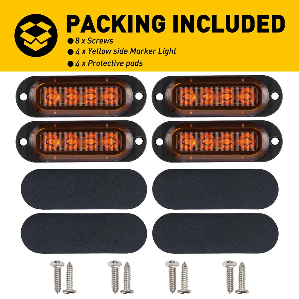 Specifications LED quantity: 4 LEDs per unit Material:ABS Housing + PC Lens Light color: Amber Voltage:12v-24v Service life:50000h+ Fits for: Suitable for all DC 12V-24V trailers, trucks, caravans, pick up, car, Van, RV, lorry, boat, etc Features: *High brightness: High brightness light outputs for improving driving safety. *Waterproof design: The waterproof design of the product works even under extreme conditions especially in rainy or foggy days.(IP67) *Great design: Compared with other brands, our back wire lead is added proper glue to make it completely seal without affecting the surface mount. *Application 4pcs 4-LED Side Marker Amber Lights Clearance Light Trailer Turn Signal Lamp Specifications LED quantity: 4 LEDs per unit Material:ABS Housing + PC Lens Light color: Amber Voltage:12v-24v Service life:50000h+ Fits for: Suitable for all DC 12V-24V trailers, trucks, caravans, pick up, car, Van, RV, lorry, boat, etc Features: *High brightness: High brightness light outputs for improving driving safety. *Waterproof design: The waterproof design of the product works even under extreme conditions especially in rainy or foggy days.(IP67) *Great design: Compared with other brands, our back wire lead is added proper glue to make it completely seal without affecting the surface mount. *Application It can be used as clearance light, side marker light, rear marker light, turn signal light, tail light etc. *Energy-saving with lower consumption. Packaging include: Amber Side Marker Light*4 Item Specifics Brand Unbranded Lighting Technology LED Suitable For Side Marker Light Number of Bulbs 4 Light Color Amber Type Side Clearance Marker Lights Features Plug and Play, Easy Installation, Sealed Assembly Manufacturer Part Number CBD-4LED-4Y Voltage DC 12V-24V Universal Fitment Yes Manufacturer Warranty 2 Years Bulb Life Hours Up to 50,000 Hours Waterproof Rate IP67 Placement on Vehicle Front, Rear, Left, Right Payment We can accept payment by credit, debit, and gift cards; Apple Pay, Google Pay, PayPal, and PayPal Credit. Shipping 1. All items will be shipped in 24 hours after receiving your payment . 2. We ship this item to US only via USPS first class mail. It usually takes 3-5 working days to deliver. Returns 1. We offer 60 days return policy. 2. Please contact us within 60 days from the date you receive your package if you have any questions with the products . 3. Refund will be sent after we got your returned package. 4. All returned items should be in the original packaging with tracking number. Contact Us We work from Monday - Saturday 9:00AM - 6:00PM PST, but we will reply you once we get your message .There will be some delay on response if you send message or E-Mail on Sunday. DESCRIPTION PAYMENT SHIPPING RETURN POLICY CONTACT US Hot item AUXITO 3157 3156 LED Flashing Brake Stop Stobe Tail Light Bulb Blinker Bulb 2F23 USD 12.91 AUXITO 3157 4157 Amber LED Turn Signal Side Marker Indicator Corner Light 2F23 USD 12.91 Help & Info Payment Policy Shipping Policy Return Policy FAQ About Us 4pcs 4-LED Side Marker Amber Lights Clearance Light Trailer Turn Signal Lamp Specifications LED quantity: 4 LEDs per unit Material:ABS Housing + PC Lens Light color: Amber Voltage:12v-24v Service life:50000h+ Fits for: Suitable for all DC 12V-24V trailers, trucks, caravans, pick up, car, Van, RV, lorry, boat, etc Features: *High brightness: High brightness light outputs for improving driving safety. *Waterproof design: The waterproof design of the product works even under extreme conditions especially in rainy or foggy days.(IP67) *Great design: Compared with other brands, our back wire lead is added proper glue to make it completely seal without affecting the surface mount. *Application It can be used as clearance light, side marker light, rear marker light, turn signal light, tail light etc. *Energy-saving with lower consumption. Packaging include: Amber Side Marker Light*4 Payment Shipping Returns Contact Us We can accept payment by credit, debit, and gift cards; Apple Pay, Google Pay, PayPal, and PayPal Credit. 1. All items will be shipped in 24 hours after receiving your payment . 2. We ship this item to US only via USPS first class mail. It usually takes 3-5 working days to deliver. 1. We offer 60 days return policy. 2. Please contact us within 60 days from the date you receive your package if you have any questions with the products . 3. Refund will be sent after we got your returned package. 4. All returned items should be in the original packaging with tracking number. We work from Monday - Saturday 9:00AM - 6:00PM PST, but we will reply you once we get your message .There will be some delay on response if you send message or E-Mail on Sunday. All rights reserved. On Sep 25, 2024 at 21:45:38 PDT, seller added the following information: