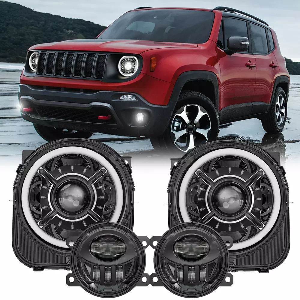 9inch LED Halo Headlights +LED Fog Lights Assembly For Jeep Renegade 2015-2018 FITMENT For Jeep Renegade 2015-2021 9 Inch DOT Approved LED Headlights SPECIFICATIONS Height: 250.4mm/ 9.86inch Width: 237.3mm/ 9.34inch Depth: 203.6mm/ 8.02inch Color Temperature: 6000K Voltage: DC 12V Power:50W@High Beam, 30W@Low Beam Lumens:5000lm@High Beam, 2400lm@Low Beam Position lamp:3.9W Outer Lens Material: PC Outer Lens Color: Clear Housing Material: Die-cast Aluminum Housing Color: Black DESCRIPTION DOT Compliant-- The DOT-compliant headlight lights guarantee your lights are Compliant in the United States Department of Transportation for use in the U.S. & Canada to secure the safety of others. Exclusive Latest Design Headlights-- 12 starry and “X” design with Halo ring. Projector and reflector combination, ensure the lights source pass through the cover in high transmission rate, keep the light steadier concentrated. More brighter 3 times than stock halogen bulbs or other similar led headlights. Provides you the best driving experience. Super Brightness-- High Beam@2600LM Low Beam@1400LM Pure White DRL Daytime Running Lights for 9 Inch LED headlight. Built-in antiflicker harness to avoid any flicker issues. Sharp cut-off line with perfect halo beam pattern gives off a more even light, NOT blind other drivers while providing the brightest and widest vision. High Quality & Durability-- Better Waterproof with 3 rebreather valves on the back to avoid fog get inside the headlights. Die-cast Aluminum Housing and Anti-scratch Polycarbonate lens will resist the test of time up to 50,000 hrs. 4" Round LED Fog Lights SPECIFICATION Diameter: 91.8mm/ 3.61 inch Depth: 76.9mm/ 3.03 inch Color Temperature: 6000K Voltage: 12V DC Power: 27W Lumen:1200lm Outer Lens Material: PC Housing Material: Die-cast Aluminum Housing Color: Black DESCRIPTION Durable Construction-- The steady housing is made of strengthened PC lens and Die-cast aluminum that the lifespan is more than 50,000 hours which it's strong enough to deal with all kinds of bad conditions. Excellent Heat Dissipation System-- Die-cast aluminum alloy housing can efficiently dissipate more heat and keep cool, make the lamp lifespan that more than 50,000hrs; IP waterproof 67 rating ensures all-weather dependability. Easy Installation-- Just Plug and Play. Complete set fog Lights are designed to simply plug into your existing wiring without any cutting or drilling. Safe Driving-- The response speed of LED lights is faster than halogen lights, and it have ultra-high brightness and ultra-wide field of view, so the driver can drive freely in the dark without worrying about driving problems caused by the darkness of the road. PACKAGE INCLUDED 2pcs LED Fog Lights 2 pcs 9 Inch LED Headlights with Daytime Running Light Payment Shipping Returns Contact us Feedback Payment Payment methods : Payment is expected within 7 days of auction close. Unpaid Items will be forfeited per eBay . Immediate payment needs to be processed for items with Add to Cart option so that any promotional discounts can be applied to your order immediately. International Buyers – Please Note: a) Import duties, taxes and charges are not included in the item price or shipping charges. These charges are the buyer's responsibility. b) Please check with your country’s customs office to determine what these additional costs will be prior to bidding /bu ying. Shipping 1.All items will be shipped to your eBay Address .Please update your latest address when you check out,and please make sure to provide us with correct,precise and detailed shipping address. 2.If your shipping address and the item location both are US, it will be shipped by USPS or UPS. All items will ship within 1-2 business days after the we receiving clear payment. 3.Service transit time is provided by the carrier. Transit times may be a little delayed during holiday season. 4.International order will be sent from China within 3 business day after the we receiving clear payment. ---For International Orders. Both are the same products and same warranty. Duties and taxes may apply. Please check with your country's custom and eBay policy for more information. 5.Where is my tracking number? Please log on your account, click "my eBay"-->"my summary", or open your email box and find the shipping notification email. Returns Our 30 days Satisfaction Guarantee assures our customers that they will receive all orders promptly and exactly as described. In addition, we offer FREE RETURNS for US buyers. It allows customers to return faulty and unused products for any reason within 30 days from the date of purchase. *Please contact us first before you sent a return request* The seller is responsible for all return shipping, including those due to customer errors or defective items. 1) If you receive an item that is incorrect, damaged, defective or not as described, please contact us for a partial/full refund or replacement. 2) If you want to return the item, please contact us within 30 days after receiving the package. 3) If you open a return request ,please select the reason for return: Doesn't fit/Changed my mind/Just didn't like it/Order by mistake. 4) We provide the 1 year of product warranty. If your product have quality problem within the warranty period, please contact us to provide repair or replacement services to you. Note: Return products must also be in its original condition: including box, packaging and all other accessories Contact us Our Working Time:(GMT+8)Monday to Friday,9:00-18:00. Have Question or Problem? Please contact us first! 1. We will reply you within 24 hours once we receive your email during business days. There will be some delay on response if you send message or E-Mail on weekend. 2. Describe your question clearly. We have a very professional and attentive customer support team. We will give you the best solution by our great communications. 3. We have always been trying to provide the best service and reliable pro