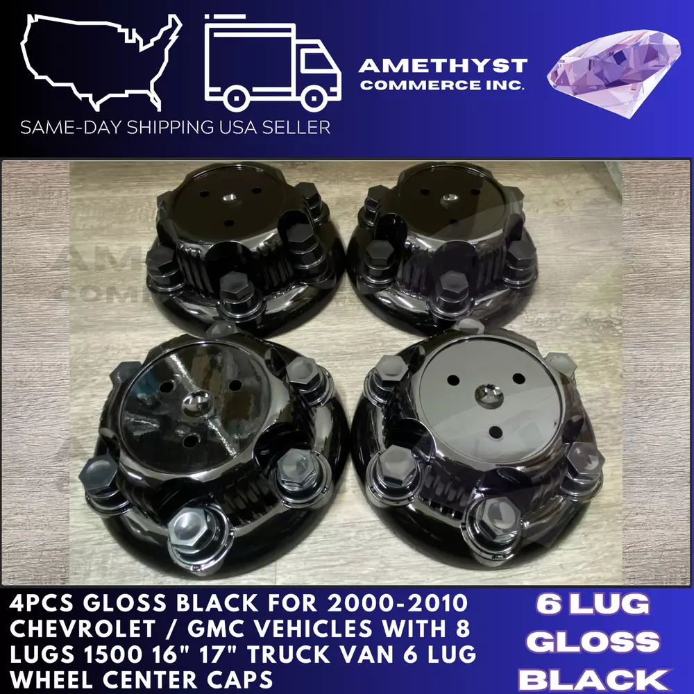 4pcs Chevy Silverado 1500 Tahoe Replacement 6Lugs BLACK Center Caps 5129c. Condition is "New". Comes alond with black nuts Fits the painted steel wheels ONLY Will not work on chrome clad wheels. 1999-2014 Chevy Silverado 1500 16'' rims 2000 Chevy Tahoe 16'' rims 2000 Chevy Suburban 1500 16'' rims 2003-2008 Chevy Van 16'' rims 2007-2013 Chevy Avalanche 17'' rims 2009 Chevy Van 17'' rims 2005-2013 Chevy Silverado 1500 17'' rims 2007-2013 Chevy Suburban 1500 17'' rims 2007-2013 Chevy Tahoe 17'' rims EBAY COMPATIBILITY IN NOT 100% ACCURATE, PLEASE SEE ABOVE CHART FOR ACCURACY.