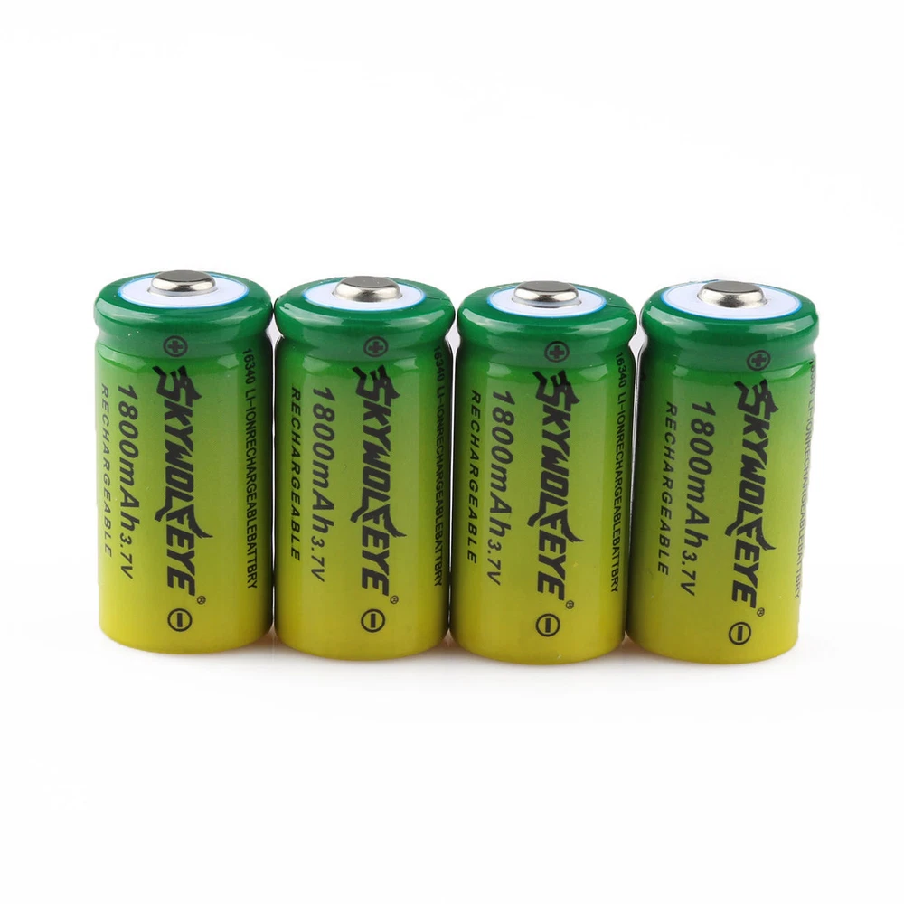 4pcs SKYWOLFEYE 1800mAh 16340 Battery RCR123A 3.7V Rechargeable Cell