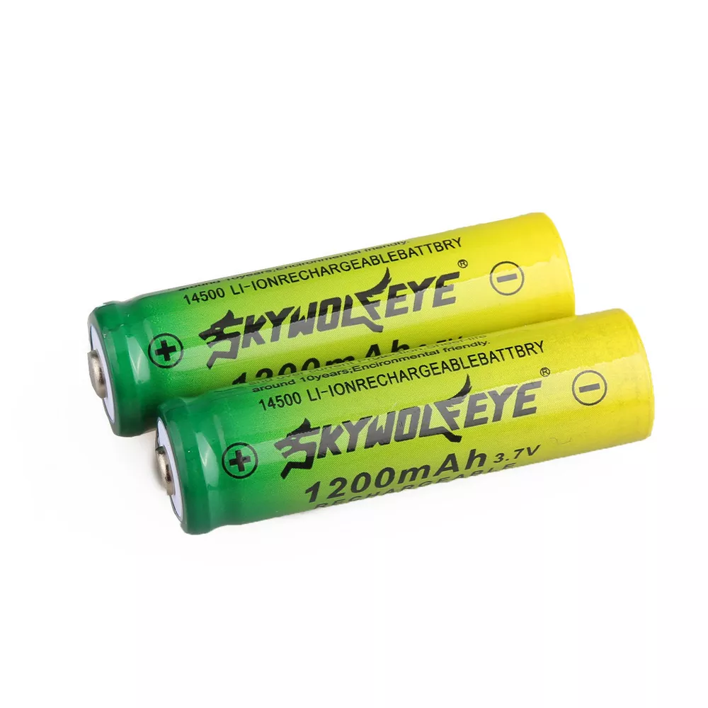4pcs SkyWolfEye 14500 Battery 1200mAh 3.7V Rechargeable Cell +4 Slot Charger