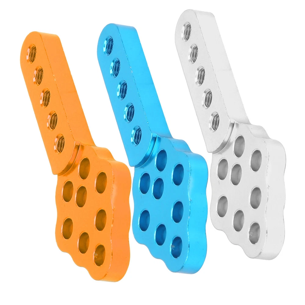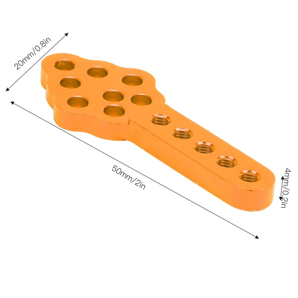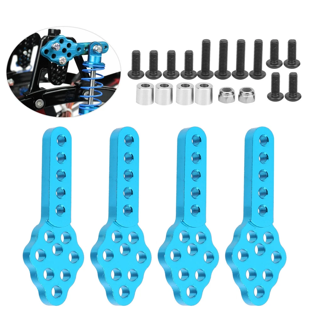 Feature: 1. Made of high quality aluminum alloy material, high strength, strong durability, long service life. 2. Easy to install and durable, the installation process will not cause any damage to your car. 3. With many mounting holes, it helps to adjust the Angle and height of the damper. 4. It is made of high quality anodized aluminium and processed by CNC. Suitable for SCX10 1/10 RC Crawler 5. It is an essential part of your remote control car, easy to install and easy to use. Specification: Item Type: Shock Damper Mount Material: Aluminium Alloy Color: As Pictures Shown Product Size: Approx. 50x20x4mm/2x0.8x0.2in Weight: Approx. 28g/1oz Quantity: 4pcs Type: RC Accessories Compatible: Suitable for SCX10 1/10 RC Crawler Package List: 4 x Shock Damper Mount 12 x Screw 2 x Nut 4 x Screw Column Note: 1. Manual measurement, please allow 1‑3mm error, thank you! 2. The picture may not reflect the actual color of the project due to the differences between different displays.