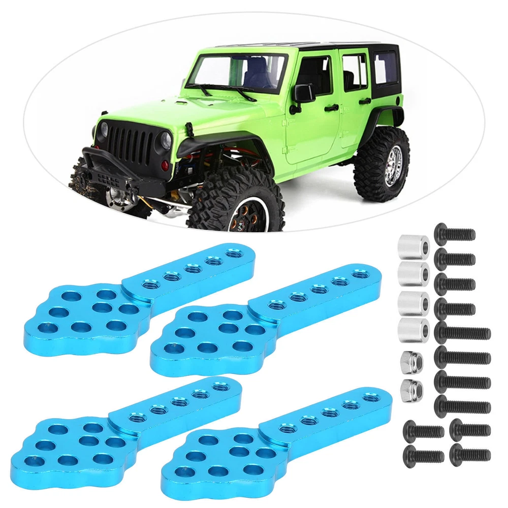 Feature: 1. Made of high quality aluminum alloy material, high strength, strong durability, long service life. 2. Easy to install and durable, the installation process will not cause any damage to your car. 3. With many mounting holes, it helps to adjust the Angle and height of the damper. 4. It is made of high quality anodized aluminium and processed by CNC. Suitable for SCX10 1/10 RC Crawler 5. It is an essential part of your remote control car, easy to install and easy to use. Specification: Item Type: Shock Damper Mount Material: Aluminium Alloy Color: As Pictures Shown Product Size: Approx. 50x20x4mm/2x0.8x0.2in Weight: Approx. 28g/1oz Quantity: 4pcs Type: RC Accessories Compatible: Suitable for SCX10 1/10 RC Crawler Package List: 4 x Shock Damper Mount 12 x Screw 2 x Nut 4 x Screw Column Note: 1. Manual measurement, please allow 1‑3mm error, thank you! 2. The picture may not reflect the actual color of the project due to the differences between different displays.