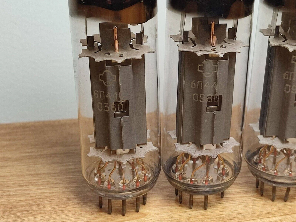 4x 6P44S REFLECTOR OUTPUT L-F PENTODE VACUUM TUBES / QUAD Same Date NOS NEW 6P44S Output low-frequency pentode with an indirectly heated oxide cathode in a glass shell. Designed to work in horizontal scanning output stages of television devices. The 6P44S output pentode is used in television and other general-purpose radio-electronic equipment. Available in glass design. 9-pin special socket. Pin location: RSh24. Overall dimensions of the 6P44S pentode: — lamp height — 94 mm; — lamp diameter — 30 mm. Weight no more than 45 g. Operating time not less than 1500 hours. --------------------------------------------------------------------------------------------------------------------------------------------------- Import duties, taxes and chargers are not included in the item price or shipping charges. These charges are the buyer's responsibility. Please check with your country's customs office to determine what these additional costs will be prior to bidding buying. Combine shipping is accepted. If you need less or more items of this type, or if you need add some other items, contact us, and we will make special listing for you. Give us the list of items you need, and we'll do the rest. We have many other vacuum tubes for audio and other, ask us if you need any of them. Items are shipped from Lithuania Post (Europe Union) via expedited International tracking. Returns We guarantee you complete satisfaction with all our high quality products. If you receive an item you did not order, or if an item you ordered is received damaged or defective, we will refund you the price you paid for it or replace it with identical one. The item should come to the above address within 30 days after you received it. After 30 days we will no longer be responsible and the item won't be taken back. Item for returning must have the original tags and packing, otherwise it won't be accepted.