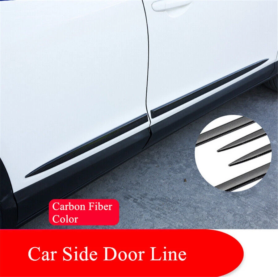4x Car Side Skirt Garnish Cover Body Door Trim Protector Strip Carbon Fiber Look