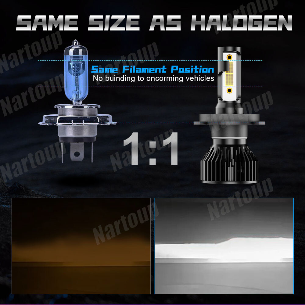 Nartoup 4"x6" Crystal Clear Glass Lens / Metal Backside H4 THESE ARE SEMI-SEALED BEAM DIAMOND CRYSTAL CLEAR GLASS FACED H4 HEADLIGHTS! Includes 100W Super White H4 LED Light Bulbs! Note: Without mounting bracket, some models may need mounting bracket! 4X6 INCH SQUARE HEADLIGHT - PAIR DIAMOND CRYSTAL CLEAR GLASS LENS / METAL BACKSIDE FITS STOCK BUCKETS,( Some models may require minor modifications ) LOW BEAM AND HIGH BEAM BRIGHTER AND WHITER THAN STOCK LIGHTS BULBS ARE REMOVABLE AND REPLACEABLE Includes 100W Super White PAIR H4 LED Light Bulbs! PLUGS INTO FACTORY WIRING PLUGS DOT / SAE APPROVED THIS LISTING IS FOR A NEW PAIR (four HEADLIGHTS) - 4x6" CRYSTAL CLEAR GLASS LENS / METAL BACKSIDE H4 CONVERSION HEADLIGHTS WITH 100W LED LIGHT BULBS. THIS SET INCLUDES 4 LOW / HIGH BEAM HEADLIGHTS. THESE HAVE THE ORIGINAL SHAPED PRONGS ON THE BACK SO THEY WILL PLUG RIGHT INTO YOUR ORIGINAL WIRING HARNESS PLUGS. THESE LIGHT UP 300% BRIGHTER THEN THE STOCK STYLE INCANDESCENT BULBS. IN RARE CIRCUMSTANCES, WIRING MODIFICATION MAY BE REQUIRED. THESE ARE FOR ANY CAR OR TRUCK THAT HAS SQUARE 4x6" HEADLIGHTS. DOT / SAE APPROVED. THESE ARE GLASS AND WE WILL TAKE EXTRA CARE IN PACKAGING. Product Specification: Bulb Size:H4 9003 HB2 Number of Bulbs:4 Material:Metal Type:Headlight Kit To Fit:Headlight Bulb Color:White Bulb Type:LED LED Type :CSP CHIP Color Temperature: 6000k-6500k Light Color:White Wattage:100W/bulb Lumens:10000LM/bulb Lifetime:50,000hrs Waterproof Rating:IP68 Waterproof Operation Voltage:DC 9-32V ( Fit 12V,24V Vehicle ) Beam Angle:360 Degrees Beam Operating Temperature: -40 - +80℃ Placement on Vehicle: Front, Left, Right Products include: 4pcs 4X6" lamp shade 4pcs H4/9003 CSP chip LED 4pcs H4 9003 to H13 9008 Connectors Cable Adapters Harness After service Notification: If you are satisfied with our product and service please leave us a positive feedback,if there is any problem when you received the package,please feel free to contact us,we will be definitely give you a satisfying solution,when you choose the return reason .please choose the reason"i don't like it". by this option we will accept your return immediately and provide return label for full refund. the others reason to return will take both of us many troubles to handle. If you have any questions, please feel free to contact us, we are happy to answer them for you. Hope you will have a good shopping experience~