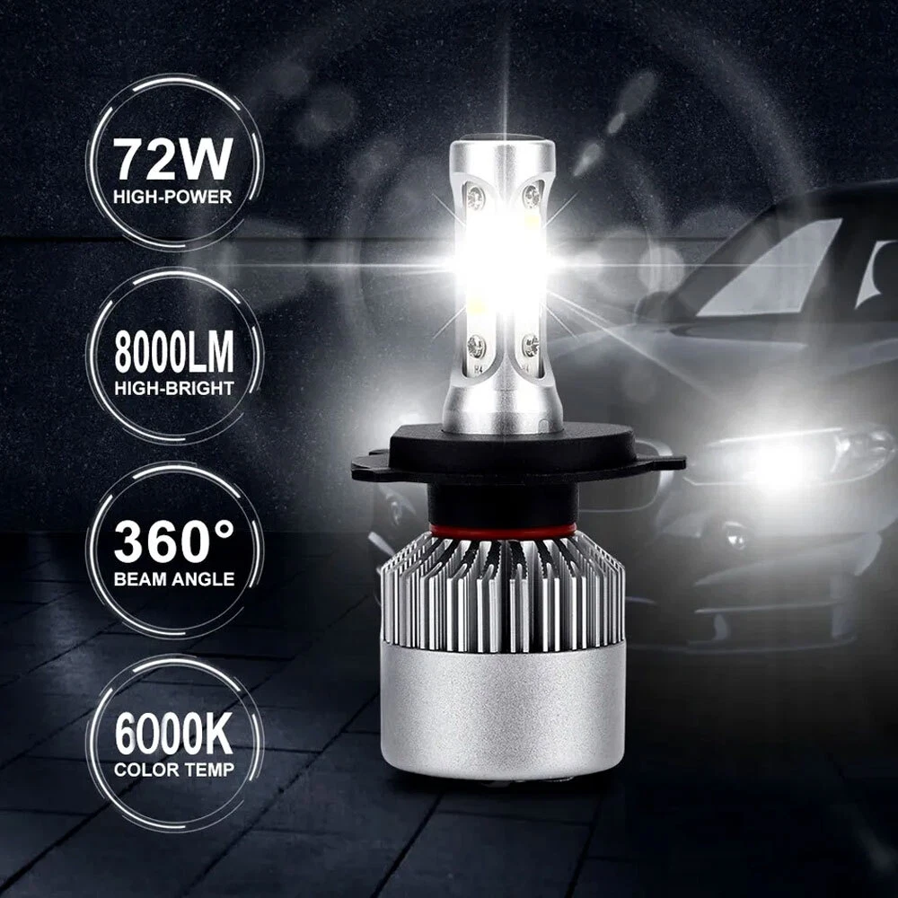 4"x6" Stock Style H4 Headlights w/ LED Bulbs - Set of 4 THESE ARE H4 CONVERSION HEADLIGHTS WITH A STOCK STYLE GLASS LENS AND METAL HOUSING! INCLUDES (4) HIGH INTENSITY LED H4 WHITE LIGHT BULBS! 4X6 INCH SQUARE HEADLIGHT - SET OF 4 Made from real glass and not cheap plastic Come with a H4 plug In-stock STOCK STYLE GLASS LENS / METAL BACKSIDE FITS STOCK BUCKETS,( Some models may require minor modifications) LOW BEAM AND HIGH BEAM BRIGHTER AND WHITER THAN STOCK LIGHTS BULBS ARE REMOVABLE AND REPLACEABLE INCLUDES 6500k WHITE LED LIGHT BULBS LOW AND HIGH BEAM FUNCTION PLUGS INTO FACTORY WIRING PLUGS DOT / SAE APPROVED THIS LISTING IS FOR A NEW SET OF 4 - 4x6" STOCK STYLE GLASS LENS / METAL BACKSIDE H4 CONVERSION HEADLIGHTS WITH WHITE LED LIGHT BULBS. THIS SET INCLUDES 2 HIGH BEAM & 2 HIGH / LOW BEAM HEADLIGHTS. THESE HAVE THE ORIGINAL SHAPED PRONGS ON THE BACK SO THEY WILL PLUG RIGHT INTO YOUR ORIGINAL WIRING HARNESS PLUGS. THESE ARE BRIGHTER AND WHITER THAN THE STOCK STYLE INCANDESCENT SEALED BEAM HEADLIGHTS. IN RARE CIRCUMSTANCES, WIRING MODIFICATION MAY BE REQUIRED. THESE ARE FOR ANY CAR OR TRUCK THAT HAS 4 SQUARE 4x6" HEADLIGHTS. DOT / SAE APPROVED. Description: Model: H4/HB2/9003 light Source Model: LED Chip, 2-sides leds, super bright Power: 200w/Set & 100w/bulb Lumen: 20000LM/Set & 10000LM/bulb Operating voltage: DC9-30V Beam Type: High beam & Low beam& Fog beam Material: Aluminum PCB and PA66+30% GF Plastic Beam Angle: 360° Color Temperature: 6500K Cool White Lifespan: over 50000h Working Temperature: -40-+80 Centigrade Waterproof rate: IP 68 Plug for this listing: H4/HB2/9003 Plug High Low Beam LED Headlight Bulbs Kit Connector Type: Plug and Play Application: LED Headlights Headlamp Lamp Bulbs High or Low Beam No Splicing of harnesses required for LED bulbs Uses 75% less power than Halogen or HID bulbs 3 times brighter than stock halogen bulbs OBC Error free operation Dramatically improves visibility at night INTERCHANGE: H4656 / H4651 / 4651 / 4652 THESE ARE GLASS AND WE WILL TAKE EXTRA CARE IN PACKAGING. Package Includes: 2 Pair of Headlight Housing (Pair Passenger and Driver Side) 2 Pair of H4 9003 LED Bulbs 2 Pair H4 9003 to H13 9008 Connectors Cable Adapters Harness