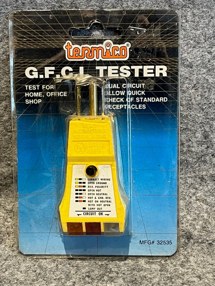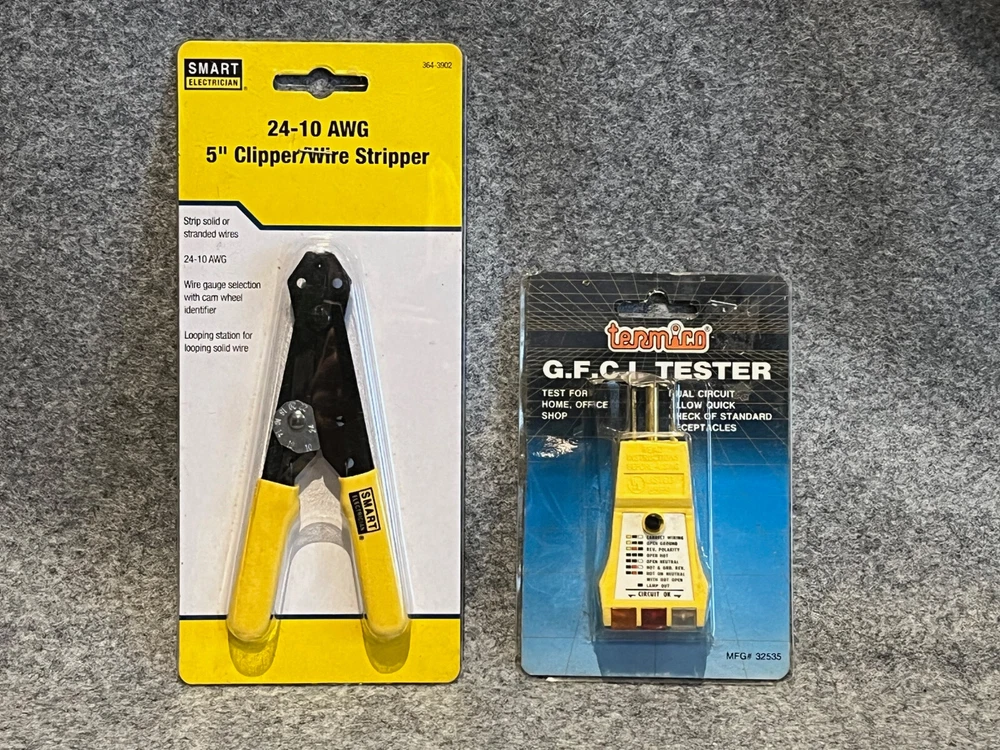 Selling a Two (2) Electrical Tools that Include: Smart Electrician 5 inch Clipper/Wire Stripper for 24-10 AWG wire; Strips Solid or Stranded wires; wire gauge selection with cam wheel identifier; Looping Station; Yellow Cushion Handle Grips Termico G. F. C. I. Tester - Dual Circuit for Checking Standard Receptacles, Eight Responses Private Estate Find See Photos for Additional Details We dig and search through estates looking for vintage items so that you do not have to expend your time and energy looking for that special item you want. This listing is being sold "as is" as displayed in photos and described in description. We strive to thoroughly and accurately describe and show our listings; however, sometimes we miss something; therefore, if you have any questions, please contact us before purchasing to eliminate any disappointment and/or frustration as we do not accept returns on used vintage tools. We offer three different shipping options on this listing; buyer can select the most favorable option. Note: For combined shipping, please add the items into your cart, then select "Request Total" on upper right hand side of page; on the next page scroll down and select "Commit to Buy and Submit Request". We will then send you an invoice with the reduced shipping costs that you can pay.