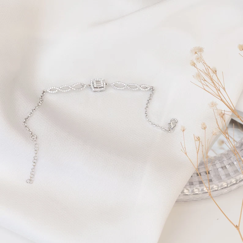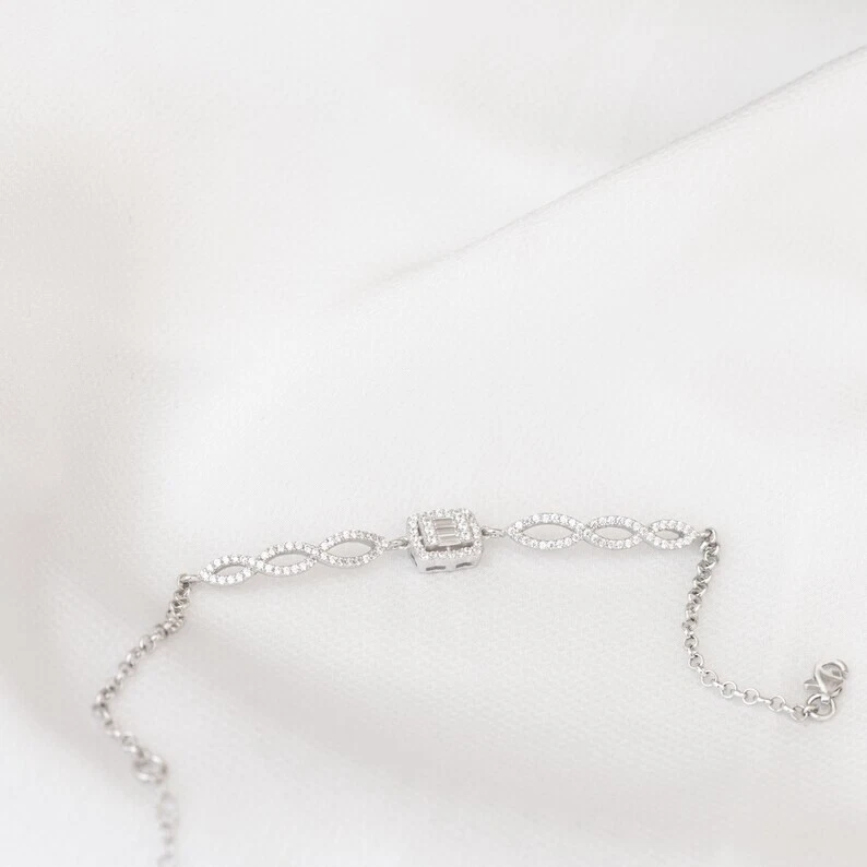 This 5 Ct Round Cut Simulated Diamond Chain Tennis Bracelet is crafted in 925 Sterling Silver. The bracelet features a lobster closure and is 7.5 inches in length. It is adorned with white simulated diamonds in a tennis link style, with excellent cut grade and prong setting. The piece is nickel-free, adjustable, and can be personalized as per the buyer's requirements. Handmade with care, this elegant bracelet is perfect for occasions like engagements, weddings, anniversaries, birthdays, and more, making it a versatile and timeless accessory.
