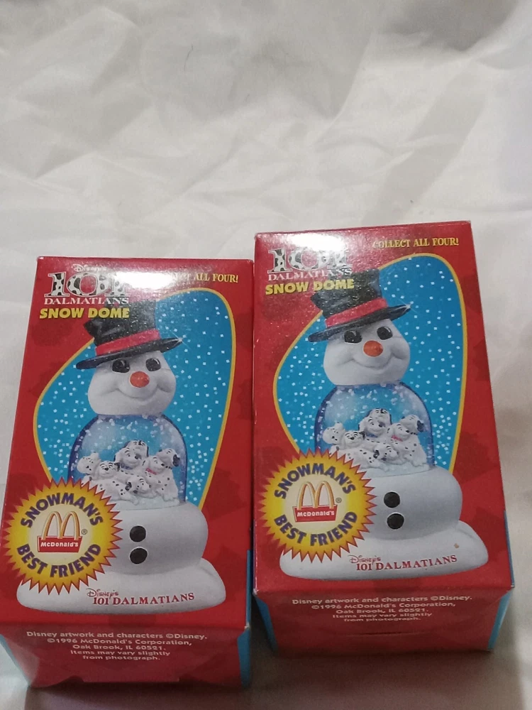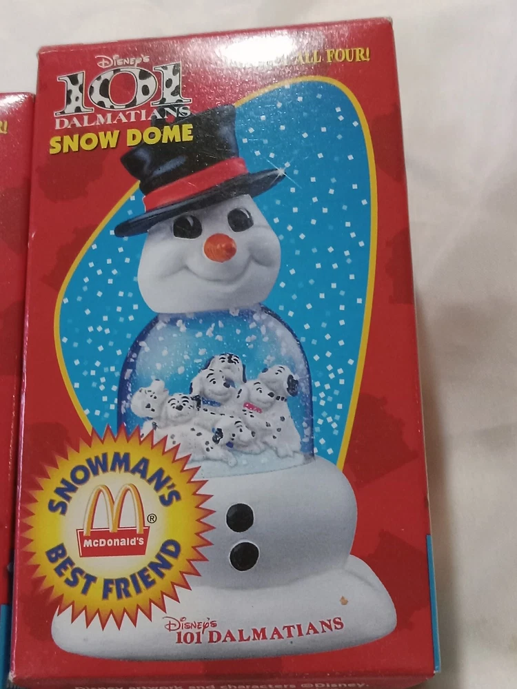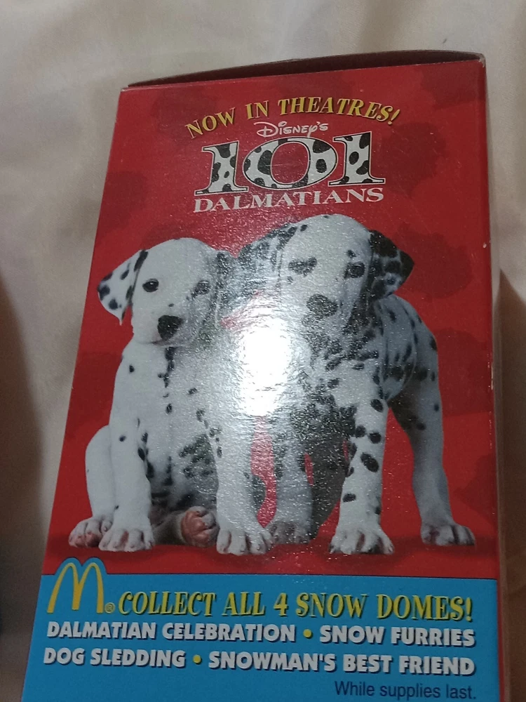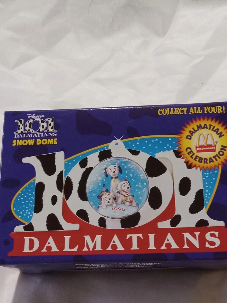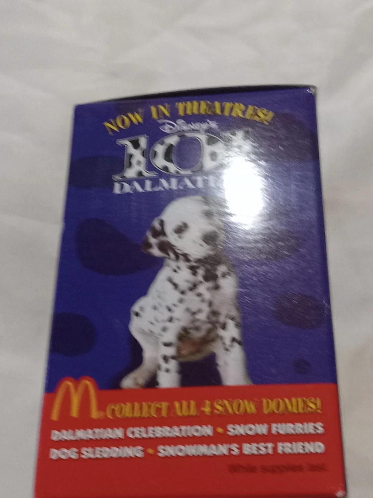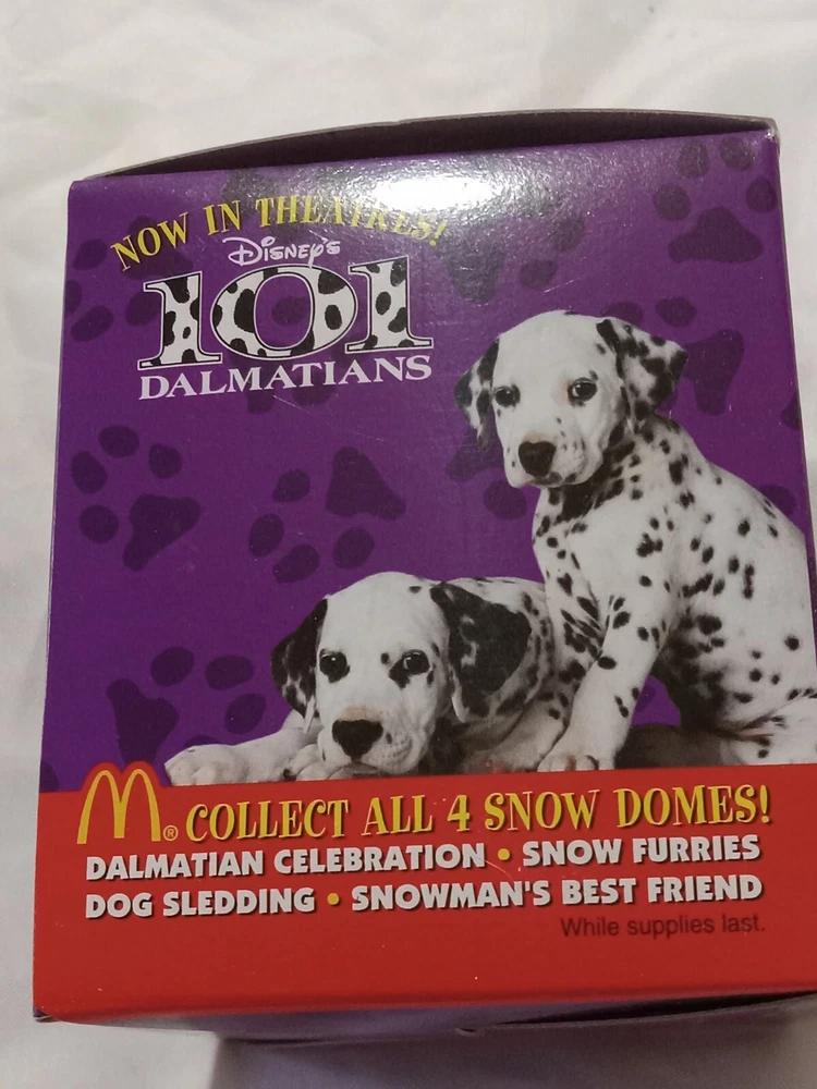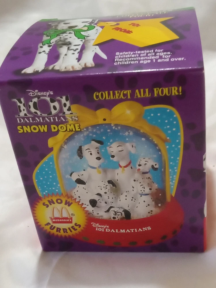 Step into the magical world of Disney's 101 Dalmatians with this complete set of 5 snow dome figurines, a memorable collectible from McDonald's 1996 Happy Meal series. Each intricately designed piece captures the playful spirit of the beloved character family, beautifully preserved within the clarity of snow globes that are sure to charm collectors and youngsters alike. The set is ideal for fans of all ages, from the youthful exuberance of 3-4 year olds to the nostalgic appreciation of 8-11 year olds and beyond. .