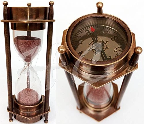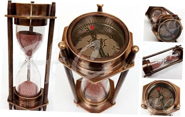 30 Days Return Policy Fast Delivery Trusted seller 5" Decorative Brass Sand Timer Hourglass with Antique Maritime Brass Compass Product Description 3 mint nautical sand timer with compass With Pink Sand Dimension : 2.2 x 1.8 x 4.8 Inches, 5.6 x 4.6 x 12.2 cm Made of Brass & Glass-Tube with .180 kg weight Must to have for maritime collector Shipping Returns Payment Shipping Shipping is FREE to all addresses other than APO/PO boxes in the lower 48 states. All our stock ships from US-based warehouses. Shipped via USPS or UPS (depending on location and package weight) Unless stated otherwise, all orders will ship within 24-72 hours of your payment being processed. Check our feedback to see the great reviews of FAST shipping we offer. Returns As our valued customer, we will do our best to make sure the product you receive arrives to you on time and as expected. If you are not satisfied with your purchase, please contact us within 30 days of receiving your order to process a return. Payment We currently accept payment via eBay managed payments only. Once payment is cleared, we will dispatch your shipment within 1-3 business days. Please refer to the "Shipping" tab for more information regarding shipping speed to your destination.