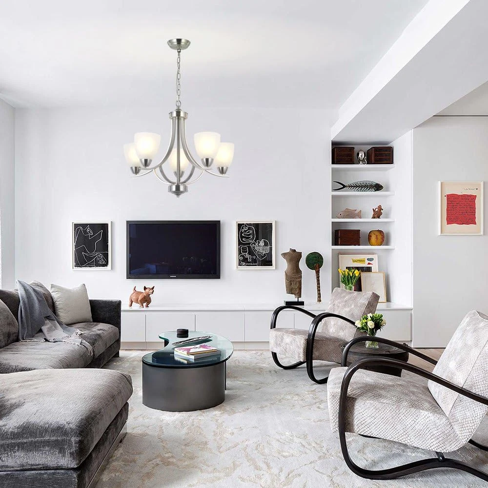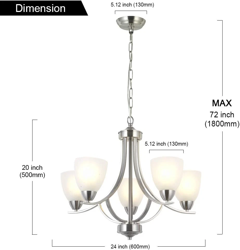 Store New Arrivals Add to Favorite View Feedback Contact 5 Light Contemporary Chandeliers Brushed Nickel Modern Light Fixtures Ceiling Hanging Industrial Pendant Lighting for Foyer Bedroom Dining Room Bathroom Description Item model number 355-5-13 Light Source Type Incandescent, Compact Fluorescent, LED Style Traditional Number of Items 5 Power Source Hardwired Number of Light Sources 5 Country of Origin China Theme Modern Light Fixtures, Industrial Pendant Lighting Lighting Method Up/Down Light Finish Types Brushed Controller Type Push Button Unit Count 1 Count Room Type Entryway, Lobby, Kitchen, Bathroom, Living Room, Hallway, Dining Room Switch Type Touch Product Dimensions 24 x 24 x 72 inches; 12 Pounds Material Metal Required Assembly No Model Number 355-5-13 Installation Type hardwired and ceiling-mounted Model Name Contemporary Chandeliers Additional Features Dimmable Is Discontinued By Manufacturer No Specific Uses For Product Indoor use only Fixture Type Non Removable Brightness 432 lumen Material Type Metal Water Resistance Level Not Water Resistant Item Weight 12 Pounds Light Fixture Form Ceiling Light fixture form Ceiling Bulb Base E26 Item Dimensions L x W x H 24"L x 24"W x 72"H Shade Color white Mounting Type Hanging,Ceiling Mount Color brushed nickel 5 light Wattage 60 watts Indoor Outdoor Usage Indoor Shape Classical Voltage 120 Volts Control Method Touch Shade Material Metal Included Components Glass Shade, Mounting Hardware Style Name Traditional Size 5 light ❉Artistic Glass Shade: White unique glass shades Design that provide a elegance look with brushed nickel finish,perfect for decoration of entryway, hallway, dining room, foyer, Kitchen, living room, meeting room etc. ❉Lighting Features: sloped ceiling available and fully dimmable when used with a dimmable bulb and compatible dimmer switch. ❉Dimentions: Chandelier: 24''(D)×72''(max-H) ; Glass shade: 5.12''(D)×4.72''(H); Canopy:5.12''(D), fully adjustable designer chain allows you to customize the fixture to your lighting needs and desired look. ❉Our Service:We providing free glass shade for u, if your glass shade broken, you could click on LightingPlus and then click on "Ask a question" to the original manufacture quickly, any quality and skill problems,we will help u soon, such as some parts and more. ❉ETL LISTED for safety: Designed with E26 bulb sockets that is compatible with any incandescent or LED bulbs(Bulbs Not Included) Product Description VINLUZ light fixtures will give you a vintage industrial feeling, modern, simple, classic and traditional Our features: Safty:VINLUZ lights are UL LISTED products. Made of high quality hardware. Style:Design art living, original home fashion. Easy Installation:easy to assembled. HEIGHT ADJUSTABLE STEM MOUNTED fully adjustable designer chain allows you to customize the fixture to your lighting needs and desired look Sloped and Flat Ceiling Available The lighting fixtures hanging canopy features a durable swivel to mount on vaulted or sloped ceilings Bulb Requirements Uses four medium base E26 light bulbs (60W max). Fully dimmable when used with a dimmable bulb and compatible dimmer switch Applications: Dining Room Living Room Bedroom ABOUT US We offer the best prices around on high quality products. Our E-store includes media such as books, movies, music and games while offering electronics, toys, sporting apparel, clothing, tools, general home, garden items and more. SHIPPING We are always working hard to ensure your package arrives as soon as possible. Please understand that some factors like weather, high postal traffic, and the performance of shipping companies are outside of our control. We offer free shipping to the lower 48 states and ship within 2 business days of payment, usually sooner. We do not accept P.O. Boxes. Please provide a physical address. For shipping outside of the continental USA, we only use eBay's Global Shipping Program.The item is shipped to KY and then sent to the rest of the world. International customers are responsible for all duties and taxes. Continue to check out in order to calculate costs for shipping the item to your country. Messages regarding eBay's Global Shipping Program MUST be directed at eBay EXCLUSIVELY. RETURNS We offer a 30-Day Return Policy on items which you are not completely satisfied with. You have the option for a full-refund or an exchange of the item. No returns are available on items shipped outside of the USA. PAYMENT We accept PayPal. CONTACT US This page content is yet to come Please ad us to your favorite seller and visit again later Thank You CUSTOMER SATISFACTION We try our very best to make sure every customer is completely satisfied. If there's a problem, message us! We're happy to help. WE ACCEPT Copyright © 2021 AutoDS. | All Rights Reserved
