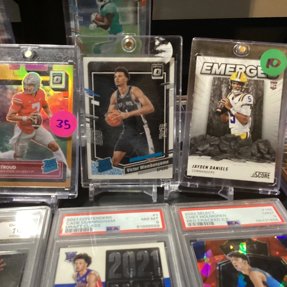 The product is a mystery sports card lot containing 5 cards from the 2020 Panini Prizm set featuring basketball players such as Stephen Curry, LeBron James, and Kevin Durant. The cards are from the 2023 NBA season and are manufactured by Panini. Each lot is valued between $5 and $40, with no base cards included. This offering caters to sports trading card collectors looking for a mix of high-value cards from top NBA athletes in the 2023 season.