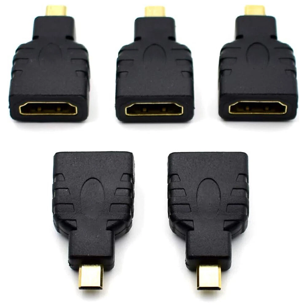 5 Micro HDMI Type D Male To HDMI Type A Female Cable Adapter Converter Connector Connects portable Micro HDMI to HDMI adapter, Convert your HDMI cable to any HDMI micro connection. 1 * Micro HDMI male Port ,1 * HDMI Female Port;Micro HDMI Male to HDMI Female Adapter For small electronics and devices, which use Micro HDMI Type D, port on a TV to display from a smartphone, laptop, camcorder, camera, or tablet. Gold Plated Conductor Ensures Reliable and High Performance Data Transmission,Perfectly Support Full-HD 1080P, 3D, audio return channel, Ethernet support. better conductivity and corrosion resistant. Micro end: 11.26x8.16mm W x D
