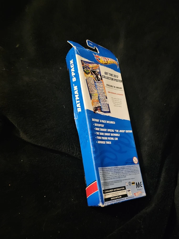 This is a set of 5 Batman Hot Wheels cars, featuring the iconic Batmobile from the 2011 Batman movie. These diecast cars are 1:64 scale and come in an unopened box. The Hot Wheels brand is known for its high-quality and collectible diecast cars, and this set is no exception. The cars are multi-colored and feature the Batman theme, with the model number 4240. They are recommended for children ages 3 and up, and are perfect for both boys and girls. These Hot Wheels cars are part of the Hot Wheels Batman series, and are a must-have for any Batman fan or collector.
