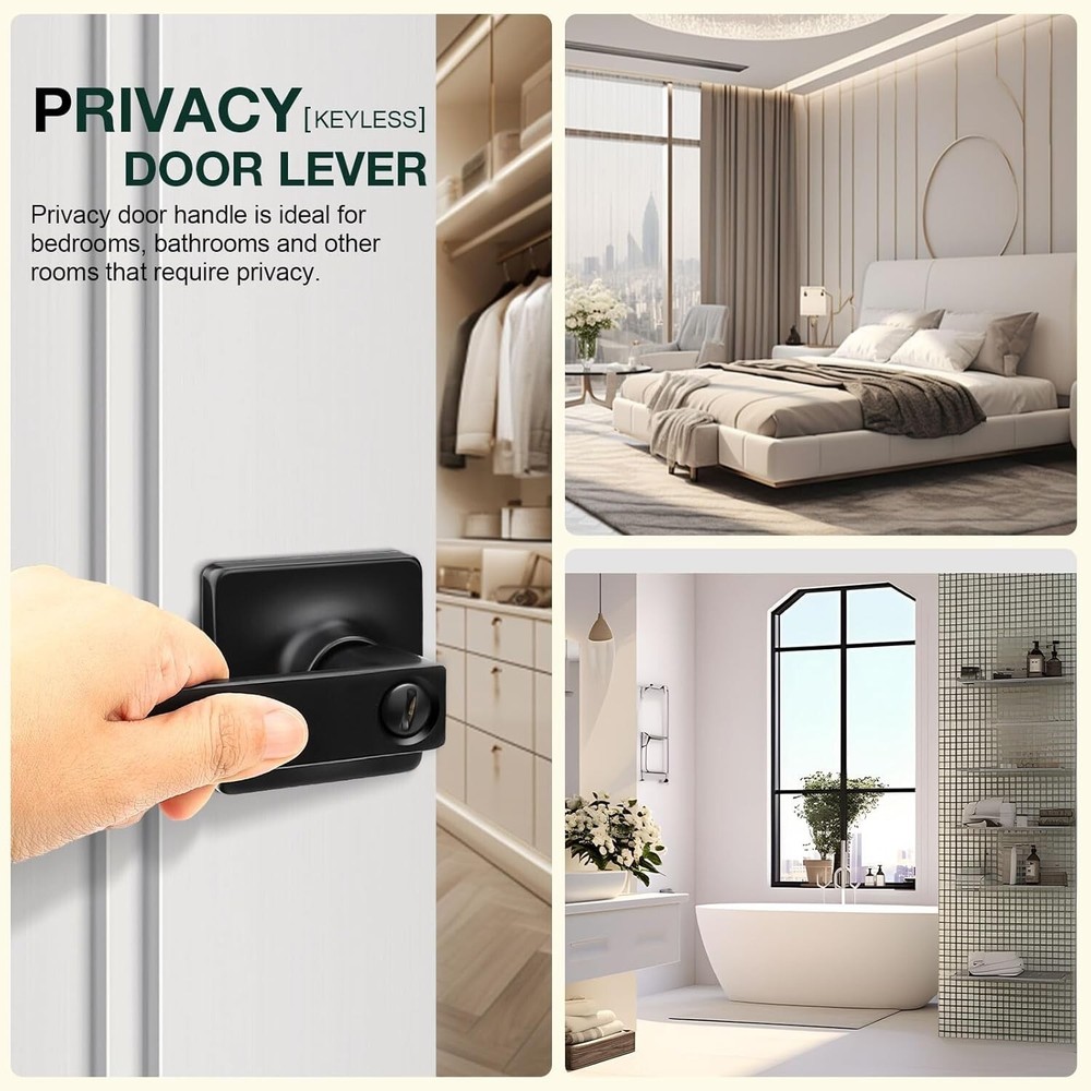 GOBEKOR 5 Pack Black Door Handles Interior Door Handle with Lock Privacy Door Levers for Bedroom Bathroom Interior Door Knobs Square Lever Door Handles Reversible Door Locks Keyless Matte Black Privacy Door Handles-for Bedroom Bathroom Privacy Door Lever (keyless): Privacy door handles interior are ideal for bedroom, bathroom, or any room where privacy is essential. Locked inside with a thumb-turn and opened outside with a coin for emergency release. Modern Design: Matte black interior door handle boasts a sleek and simple design that blends into any modern decor. Crafted from premium stainless steel and zinc alloy, sturdy and durable. Fit Standard-sized Doors: Square interior door handle with lock is designed to fit standard-sized doors with a door thickness ranging from 35mm to 45mm(1-3/8" to 1-3/4"). It can be used on both left-handed and right-handed doors. Dimensions: Square Rosette Diameter: 2-3/5"(65mm); Handle Length: 4-4/5"(123mm); Adjustable Latch: 2-3/8" or 2-3/4" (60 or 70mm) backset. Easy Installation: Comes with installation instruction and all necessary mounting hardware. All you need is a door and a philips screwdriver.
