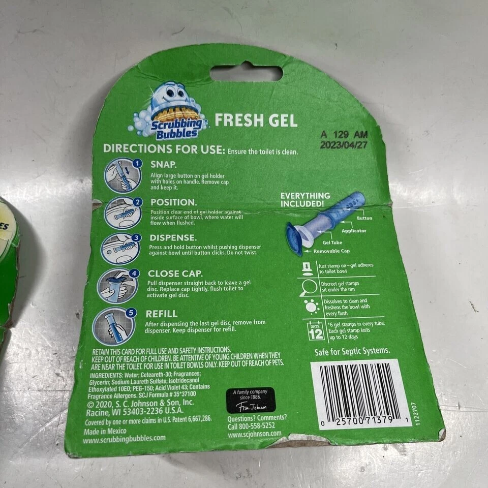 5 Pack Scrubbing Bubbles Fresh Gel Toilet Cleaning Stamp Glade Lavender Meadow Packs may have slight damage but won't effect product.