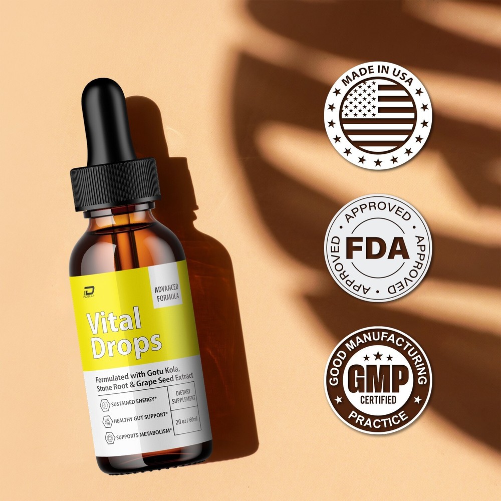 Explore the world of finely crafted natural supplements with Vital Drops Advanced Formula . This exceptional dietary supplement is designed to provide an extra-strength solution for those looking to comprehensively enhance their wellness routine. Vital Drops are rooted in a dedication to purity and efficacy. Vital Drops Advanced Formula: Blending natural ingredients like Organic Hawthorn Berry and Horse Chestnut Extract, Vital Drops are crafted to boost overall wellness and enhance your daily health routine. Each bottle includes a reusable dropper for easy and accurate dosing. VitalDrops Boost Wellness with Grape Seed Extract: A powerful antioxidant, Grape Seed Extract in Vital Drops health and promotes a vibrant lifestyle. This extra-strength formula integrates effortlessly into your daily routine. Vital Drops Prioritize Purity and Potency: Vital Drops Liquid Drops Advanced is crafted with high-quality, natural ingredients, free from unnecessary additives. Our formula is designed for health-conscious individuals who value purity and effectiveness in their dietary supplements. VitalDrops Convenient Health Solutions: Vital Drops come with a reusable dropper, making it simple to incorporate into your daily regimen, whether you're at home or on the go. Enjoy a straightforward approach to maintaining your wellness with Vital Drops. Naturally Sourced, Extra Strength Formula: Vital Drops Drop's premium blend of herbal extracts to complement your health-conscious lifestyle and support your wellness endeavors.