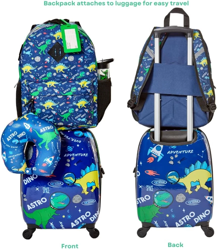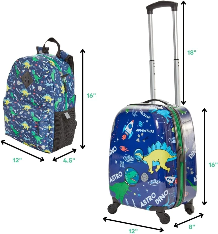 Store New Arrivals Add to Favorite View Feedback Contact 5 Pc. Boys’ Dinosaur Space Rolling Suitcase Set with Backpack, Neck Pillow, Water Bottle, and Luggage Description Item model number RF10023 Style Dinosaur Space Capacity Total 1 Centiliters Product Dimensions 16 x 12 x 8 inches Country of Origin China Item Weight 5.49 pounds Department Boys CARRY ON BOYS LUGGAGE SET WITH WHEELS – Boys will love the dino astronaut print, and parents will love the practical and durable design. The roomy interior of the 16 inch hard side suitcase holds all he needs for weekend trips and sleepovers, with interior mesh pockets and secure strap closures. COMES WITH A 16 INCH DINOSAUR BACKPACK - The matching printed backpack has a special band that easily attaches it to the extended luggage handle. It has padded adjustable straps, a front zip pocket, reflective strips, and side mesh pockets. INCLUDES TRAVEL ACCESSORIES - The set comes with a matching dinosaur printed BPA free water bottle, luggage tag to be personalized (4” x 2.5”), and neck pillow with snap closure (12” x 4” x 10”). RETRACTABLE HANDLE – For easy travel, the telescopic handle can be safely stored. This set makes it easy for kids to pack and manage their own luggage. IDEAL FOR TRAVEL WITH KIDS 5+ and Up – The 16 inch suitcase fits in plane overhead compartments. High quality wheels that rotate 360 degrees make it easy to pull, and it’s lightweight so kids can maneuver it easily. Product Description Travel Accessories Luggage Tag Neck Pillow Dino Printed Water Bottle Luggage Key Features Double Zipper Closure Height Adjustable Handle 4 Wheels that Rotate 360 Carrying Handle Backpack Attaches to Luggage For Easy Travel ABOUT US We offer the best prices around on high quality products. Our E-store includes media such as books, movies, music and games while offering electronics, toys, sporting apparel, clothing, tools, general home, garden items and more. SHIPPING We are always working hard to ensure your package arrives as soon as possible. Please understand that some factors like weather, high postal traffic, and the performance of shipping companies are outside of our control. We offer free shipping to the lower 48 states and ship within 2 business days of payment, usually sooner. We do not accept P.O. Boxes. Please provide a physical address. For shipping outside of the continental USA, we only use eBay's Global Shipping Program.The item is shipped to KY and then sent to the rest of the world. International customers are responsible for all duties and taxes. Continue to check out in order to calculate costs for shipping the item to your country. Messages regarding eBay's Global Shipping Program MUST be directed at eBay EXCLUSIVELY. RETURNS We offer a 30-Day Return Policy on items which you are not completely satisfied with. You have the option for a full-refund or an exchange of the item. No returns are available on items shipped outside of the USA. PAYMENT We accept PayPal. CONTACT US This page content is yet to come Please ad us to your favorite seller and visit again later Thank You CUSTOMER SATISFACTION We try our very best to make sure every customer is completely satisfied. If there's a problem, message us! We're happy to help. WE ACCEPT Copyright © 2021 AutoDS. | All Rights Reserved