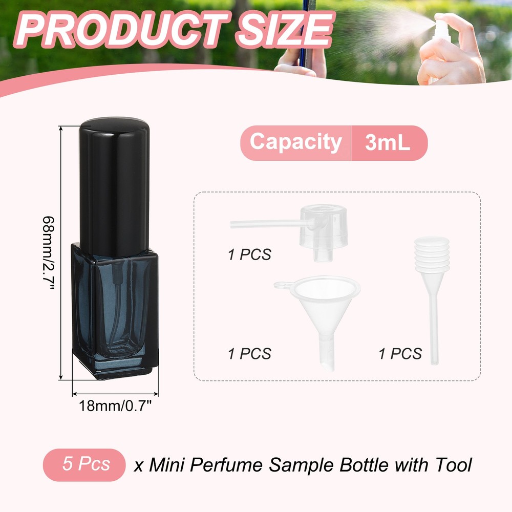 Document Description:Material: The travel bottles are made of durable and refillable Glass and PP material, which is not easily broken and deformed and can be reused after washing.Leakproof Design: The aluminized nozzle and spring button make it convenient for you to use, providing even lotion at every press. The screw cap features a screw-on design for easy pouring out and leak-proof performance.How to Refill: Twist off the cap, pour the liquid into the bottle, and close the cap, making it easy to refill the perfume bottles with your preferred fragrance. Then Press the pump to squeeze out the solution.Wide Application: The mini perfume sample bottle can be used for travel, bathroom, kitchen, and business trips. It is suitable for dispensing essential oils, body mist, perfumes, etc.SpecificationMaterial: Glass and PPColor: Clear/GoldCapacity: 3mlOverall Size: 56 x 17 mm/ 2.2 x 1 Inch(H*OD)Packing Content: 25 Pcs x Mini Perfume Sample Bottle with ToolColor: Gradient Blue/BlackCapacity: 3mlOverall Size: 68 x 18 mm/2.7 x 0.7 inches(H*OD)Packing Content: 5 Pcs x Mini Perfume Sample Bottle with Tool 5 Pcs 3ml Fine Mist Bottles Empty Mini Spray Bottles (Gradient Blue/Black) Description: Material: The travel bottles are made of durable and refillable Glass and PP material, which is not easily broken and deformed and can be reused after washing. Leakproof Design: The aluminized nozzle and spring button make it convenient for you to use, providing even lotion at every press. The screw cap features a screw-on design for easy pouring out and leak-proof performance. How to Refill: Twist off the cap, pour the liquid into the bottle, and close the cap, making it easy to refill the perfume bottles with your preferred fragrance. Then Press the pump to squeeze out the solution. Wide Application: The mini perfume sample bottle can be used for travel, bathroom, kitchen, and business trips. It is suitable for dispensing essential oils, body mist, perfumes, etc. Specification Material: Glass and PP Color: Clear/Gold Capacity: 3ml Overall Size: 56 x 17 mm/ 2.2 x 1 Inch(H*OD) Packing Content: 25 Pcs x Mini Perfume Sample Bottle with Tool Color: Gradient Blue/Black Capacity: 3ml Overall Size: 68 x 18 mm/2.7 x 0.7 inches(H*OD) Packing Content: 5 Pcs x Mini Perfume Sample Bottle with Tool Hot Item Payment 1.We accept eBay payment . 2.Payment must be received within 7 business days of auction closing. Shipping 1.We ship to your eBay or Paypal address. Please make sure your eBay and Paypal address is correct before you pay. 2.Items will be shipped within 1-3 business day when we received payment. 3.Delivery time depends on destination and other factors. Description Policy 5 Pcs 3ml Fine Mist Bottles Empty Mini Spray Bottles (Gradient Blue/Black) Description: Material: The travel bottles are made of durable and refillable Glass and PP material, which is not easily broken and deformed and can be reused after washing. Leakproof Design: The aluminized nozzle and spring button make it convenient for you to use, providing even lotion at every press. The screw cap features a screw-on design for easy pouring out and leak-proof performance. How to Refill: Twist off the cap, pour the liquid into the bottle, and close the cap, making it easy to refill the perfume bottles with your preferred fragrance. Then Press the pump to squeeze out the solution. Wide Application: The mini perfume sample bottle can be used for travel, bathroom, kitchen, and business trips. It is suitable for dispensing essential oils, body mist, perfumes, etc. Specification Material: Glass and PP Color: Clear/Gold Capacity: 3ml Overall Size: 56 x 17 mm/ 2.2 x 1 Inch(H*OD) Packing Content: 25 Pcs x Mini Perfume Sample Bottle with Tool Color: Gradient Blue/Black Capacity: 3ml Overall Size: 68 x 18 mm/2.7 x 0.7 inches(H*OD) Packing Content: 5 Pcs x Mini Perfume Sample Bottle with Tool Hot Item Payment 1.We accept eBay payment . 2.Payment must be received within 7 business days of auction closing. Shipping 1.We ship to your eBay or Paypal address. Please make sure your eBay and Paypal address is correct before you pay. 2.Items will be shipped within 1-3 business day when we received payment. 3.Delivery time depends on destination and other factors.