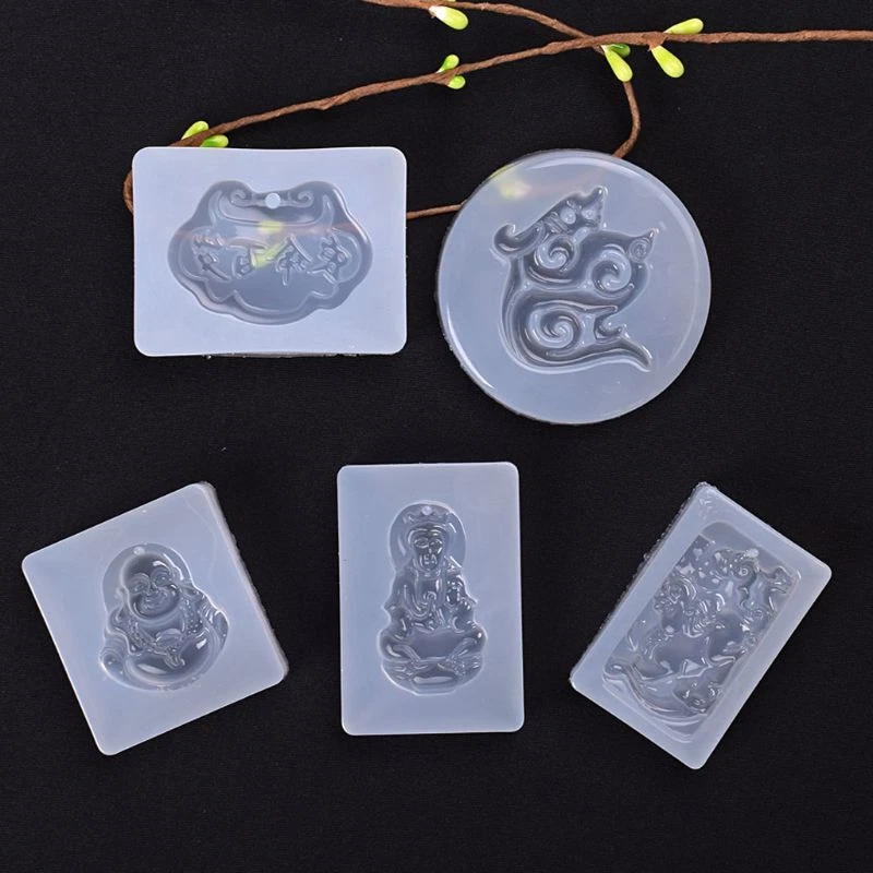 Feature: Flexible soft silicone jewelry pendant making mold Easy to use and clean One Kit includes 5 different Buddhism Jade shapes, Suitable for making earring drop, necklace, bracelet pendant, keychain or other jewelry pieces. Material: silicone Color: white Size: More detailed,please see photo. Quantity: 5 Pcs, Note: Due to lighting effects, monitor\'s brightness , contrast settings etc, there could be slight differences in the color tone of the pictures and the actual item. Please allow 1-2mm differs due to manual measurement, thanks. Package includes: 5 Pcsx Silicone Mold.