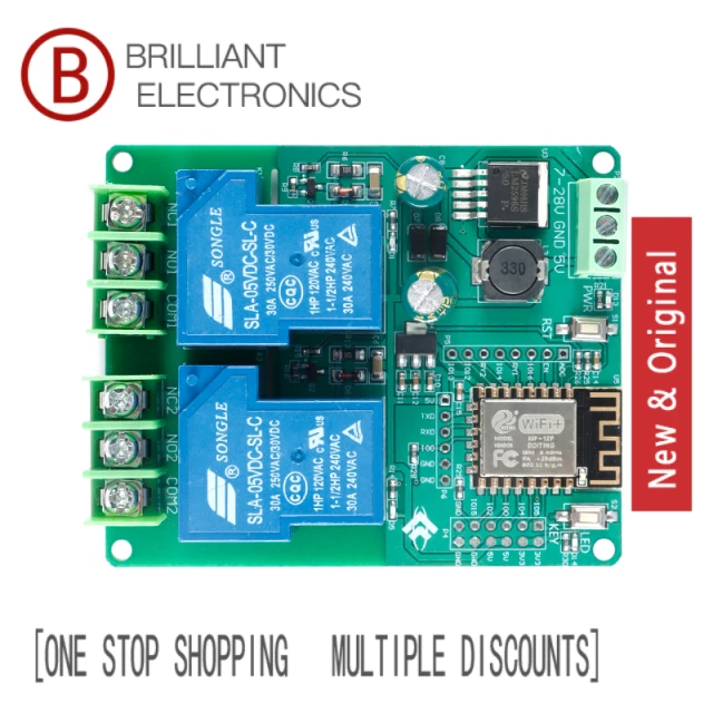 (5 Pcs)ESP8266 Dual Channel 30A Relay Module ESP-12F Development Board Secondary