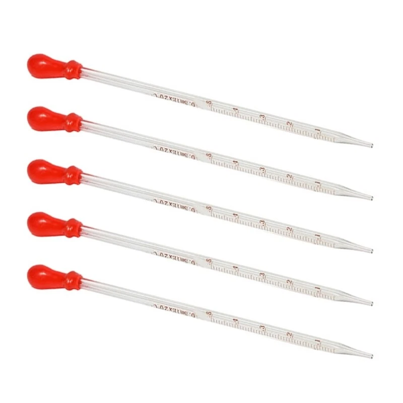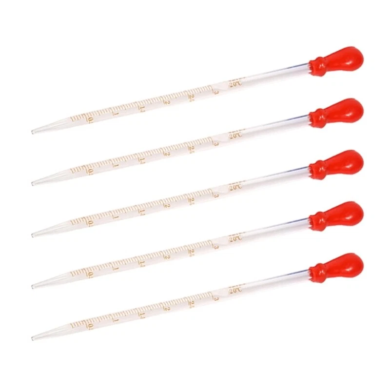 5 Pieces Glass Pipette Dropper Liquid Pipettes Glass Scale Graduated Dropper Features: The package includes: 5 pcs glass scale graduated droppers. 6 different capacity: 0.5ml, 1ml, 2ml, 3ml, 5ml, 10ml. Choose as your needs This liquid pipette is made from glass material, very durable. High temperature resistance and resistance. Clear and precise scale, easy to read and observe. The glass liquid dropper with rubber top which can be easily disassembled and assembled for Simply remove the top and place it in water. This glass pipettes is for measuring nutrients for small to plant, transfer liquid, oil, feeding the pet, DIY art good choice for children's creative activities and fun scientific experiments. Widely used for experiments, laboratory, school teaching, handmade soap, candy, DIY art craft. Glass droppers are reusable after better than dropper. Specifications: Glass Color: Transparent Type: 0.5ml, 1ml, 2ml, 3ml, 5ml, 10ml Size: Approx. 20cm/7.87in Weight: Approx. 60g Package Includes: 5 Pieces Glass Liquid Pipette Dropper note: 1.Please allow 0-1cm error due to manual measurement. make sure you do not mind before you bid. 2.Due to the difference between different monitors, the picture may not reflect the actual color of the item. Thank you