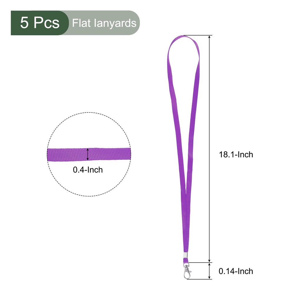 Document √MULTIPURPOSE - Our flat lanyards are mainly used in offices, exhibitions, events, trade shows and other places to hang cardholders' cards such as ID cards, name tags, badges, holders, access cards, key chains, etc.√WHAT YOU GET - The package comes with 5pcs flat lanyards that diameter 18.1 x 0.4-inch, 0.23 inch clip overall width√RELIABLE MATERIAL - This flat lanyard is made of polyester, it has a smooth surface, soft and comfortable hand feel, is durable and has a long life.√SPECIAL DESIGNED - This flat lanyard with swivel hook clip is designed for holders to wear cards, easy to carry and fit for all lanyard badge.√KINDLY NOTE - Please read the measurements before ordering if you are concerned about the size. And the card is not Included. 5 Pcs Flat Lanyards Neck Strap Lanyard Swivel Hook Clip for Office Purple √MULTIPURPOSE - Our flat lanyards are mainly used in offices, exhibitions, events, trade shows and other places to hang cardholders' cards such as ID cards, name tags, badges, holders, access cards, key chains, etc. √WHAT YOU GET - The package comes with 5pcs flat lanyards that diameter 18.1 x 0.4-inch, 0.23 inch clip overall width √RELIABLE MATERIAL - This flat lanyard is made of polyester, it has a smooth surface, soft and comfortable hand feel, is durable and has a long life. √SPECIAL DESIGNED - This flat lanyard with swivel hook clip is designed for holders to wear cards, easy to carry and fit for all lanyard badge. √KINDLY NOTE - Please read the measurements before ordering if you are concerned about the size. And the card is not Included. Hot Item Payment 1.We accept eBay payment . 2.Payment must be received within 7 business days of auction closing. Shipping 1.We ship to your eBay or Paypal address. Please make sure your eBay and Paypal address is correct before you pay. 2.Items will be shipped within 1-3 business day when we received payment. 3.Delivery time depends on destination and other factors. Description Policy 5 Pcs Flat Lanyards Neck Strap Lanyard Swivel Hook Clip for Office Purple √MULTIPURPOSE - Our flat lanyards are mainly used in offices, exhibitions, events, trade shows and other places to hang cardholders' cards such as ID cards, name tags, badges, holders, access cards, key chains, etc. √WHAT YOU GET - The package comes with 5pcs flat lanyards that diameter 18.1 x 0.4-inch, 0.23 inch clip overall width √RELIABLE MATERIAL - This flat lanyard is made of polyester, it has a smooth surface, soft and comfortable hand feel, is durable and has a long life. √SPECIAL DESIGNED - This flat lanyard with swivel hook clip is designed for holders to wear cards, easy to carry and fit for all lanyard badge. √KINDLY NOTE - Please read the measurements before ordering if you are concerned about the size. And the card is not Included. Hot Item Payment 1.We accept eBay payment . 2.Payment must be received within 7 business days of auction closing. Shipping 1.We ship to your eBay or Paypal address. Please make sure your eBay and Paypal address is correct before you pay. 2.Items will be shipped within 1-3 business day when we received payment. 3.Delivery time depends on destination and other factors.