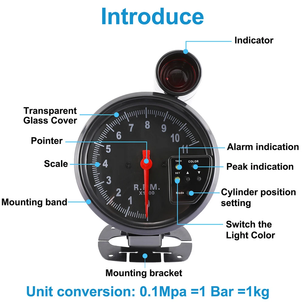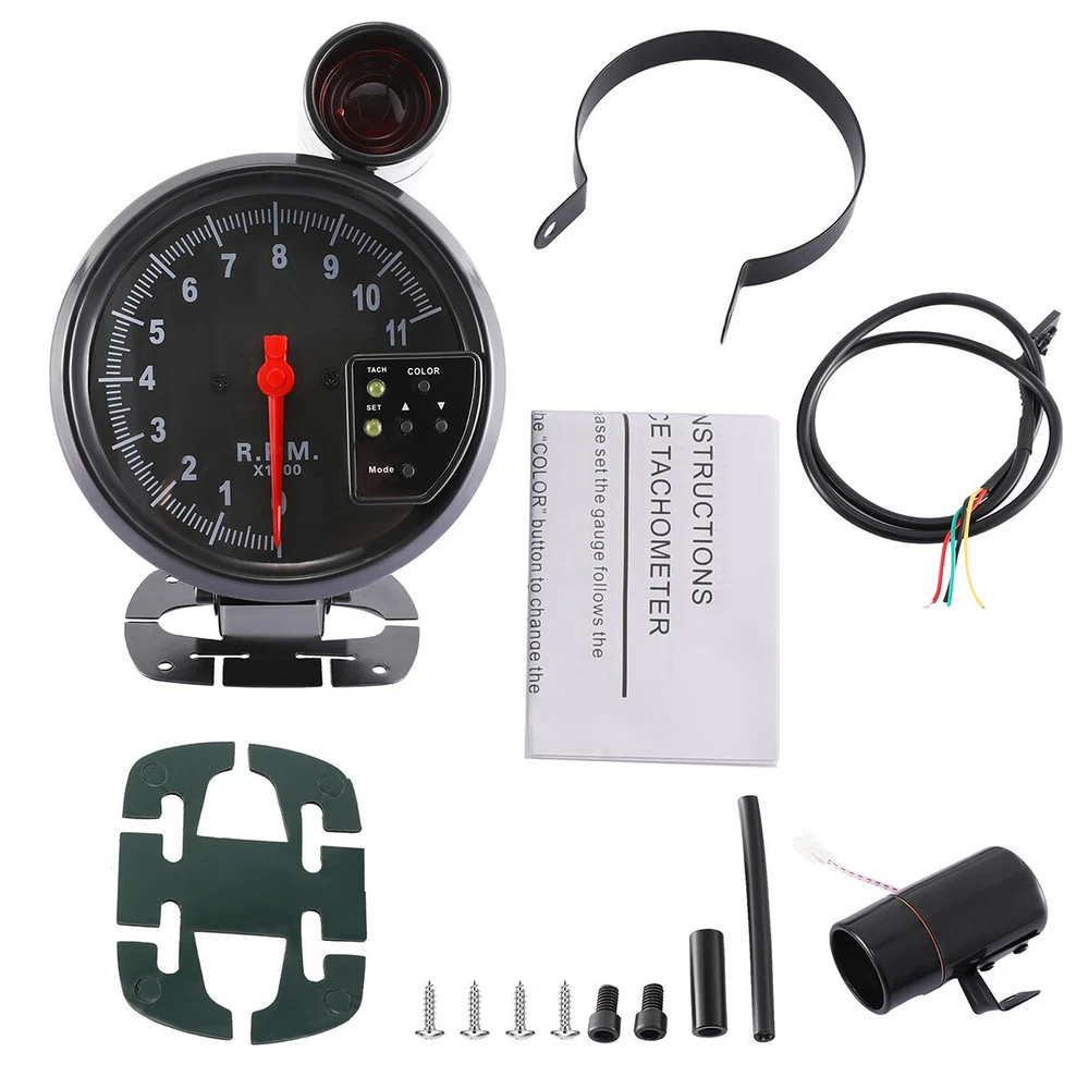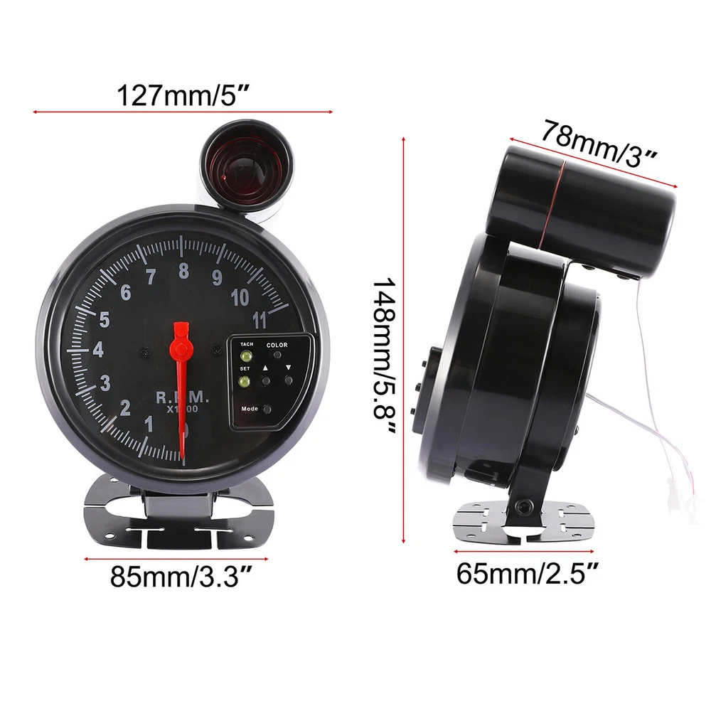 5" Tachometer 7-color Backlight with Shift Light LED Peak Warning 0-11000 RPM FEATURE 1.Aluminum Housing: The tachometer adopts aluminum housing, which is light in weight and has high strength to withstand certain external impacts and protect the internal precision parts. 2.High-Quality Smooth Movement: The tachometer is equipped with a high-quality smooth movement, which results in lower frictional resistance and less jitter during the rotation of the pointer, and higher accuracy of the indication. 3.High-Quality Copper: The contact points of the tachometer are made of high-quality copper, which is easier to conduct electricity and not easy to aging. 4.Seven-Color Backlight: The tachometer is equipped with a seven-color backlight, which can be selected in any color and can also change colors automatically. 5.Wide Applicability: Tachometers have a wide range of applications in the transportation field, and are suitable in most 12V car models. PRODUCT PARAMETER Background Light Color: Seven Colors Voltage: 12V Shell Material: Aluminum Size: 13cm/5.12in PRODUCTS INCLUDE 1x Tachometer 1x Adhesive Stickers 1x Hose 1x Alarm Light 1x Cord 4x Screws Payment Delivery details Terms of sales About us Contact us Payment Payments: Paypal, Google Pay, Visa, Master Card, Amerian Express, Discover. Delivery details All items are shipped from US warehouse located at NJ . We ship to your eBay or Paypal address. Please make sure your eBay or Paypal address is correct before you pay. Terms of sales Free return About us Pls contact our customer service firstly if have any problems , we will help to solve the issue, and could offer free return service for full refund or free replacement after confirming. You can buy from us with confidence Contact us If have any problems, please feel free to contact us.
