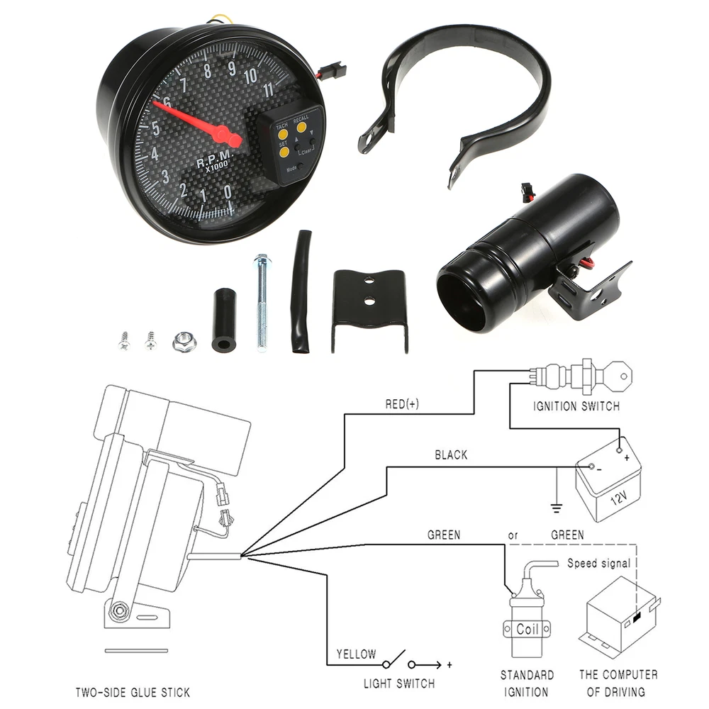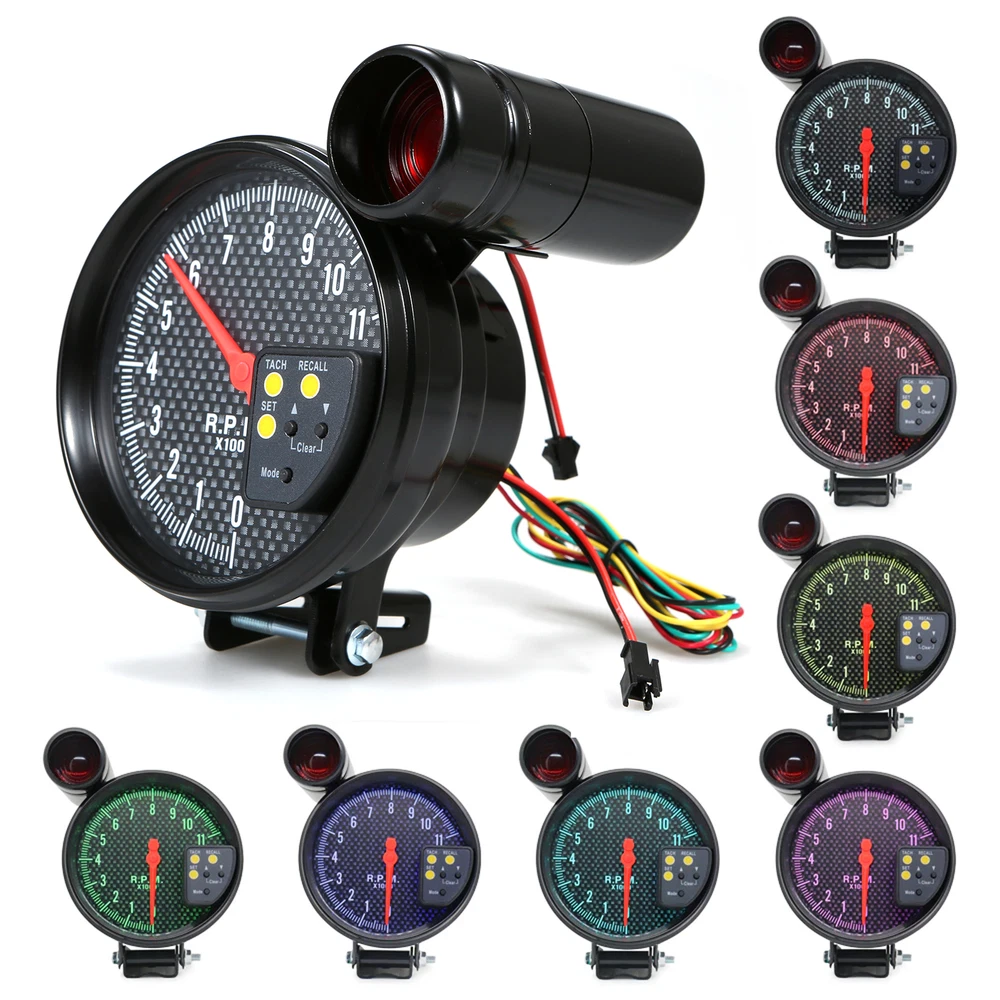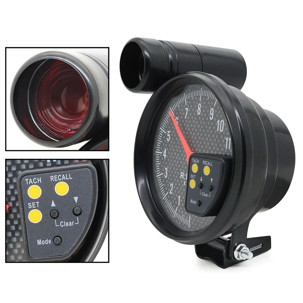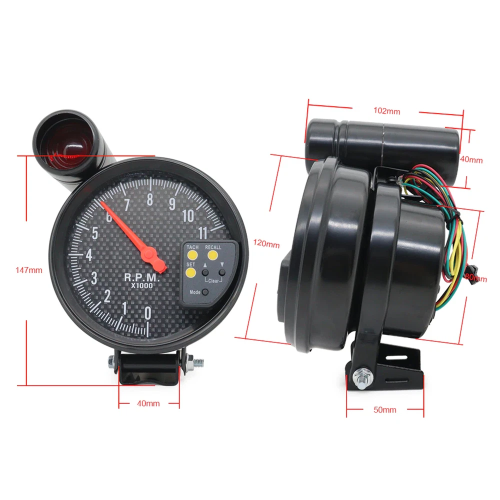 Features 5inch diameter, with black face, smoked lens and super bright LED background light. 0-11,000 RPM measurement, shift light RPM is adjustable. The stepping motor is sufficient for quick response of all sorts of professional motor sports. The gauge dial is invisible while the ignition switch is off. Once the ignition switch is turned on, a clear display appears by colored LED illumination. Provide high precision in the accuracy of information generated. Adjustable color, choose the color of backlights according to personal preference. 7 colors are available Specifications: Gauge Color: Carbon fiber fase Light Color: Light Color: Dark Blue/Yellow/Pink/Light Blue/Green/Red/Clear, 7 Colors with one gauge Material: ABS Gauge Display: LED Shift light: Green First and then turn Red Measurement Range: 0~11,000 RPM Powered By: DC12V Switch Unit Length: Approx. 5cm / 2" Indicator Size: 7.62 * 3cm / 3 * 1.2in (L * W) Diameter: 5 inch Fitment: 4 6 8 cylinders petrol engine Package Size: 24 * 20.7 * 12.8cm/9.6*8.2*5.2in Package Weight: 1017.4g / 35.9oz Package List: 1* Tachometer Gauge 1* Shift Light 1* Mounting Bracket 1* Meter Cup 1* Installation Manual Looking forward to your five-star positive feedback, contact us if you have any problems.