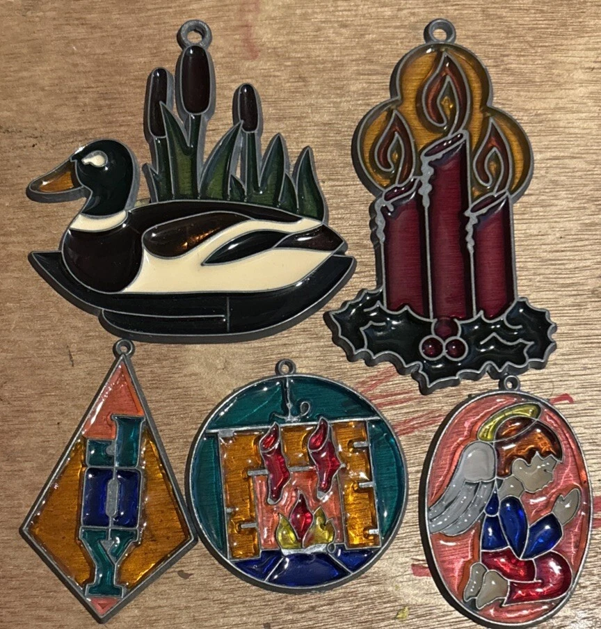 5 Vintage Stained Glass Style Suncatcher Christmas Ornaments
