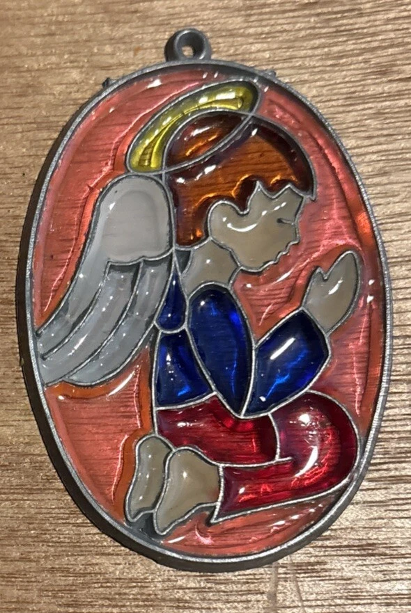 Set of 3 Stained Glass Angel/Cross Ornaments Window Hangers Pink Purple Green