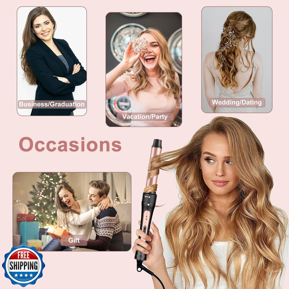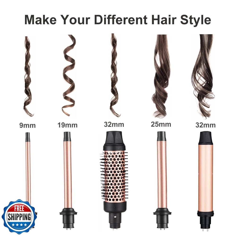 5 in 1 Curling Wand Set, Curling Iron with Curling Brush and 4 Interchangeable Ceramic Curling Wand(0.35”-1.25”), Fast Heating, Include Heat Protective Glove and 2 Clips Features 💕【5 IN 1 Curling lron】-This professional curling iron set includes 1.5 inch curling brush and different size of cylinder curling wand barrels (1.25'', 0.98", 0.75", 0.35'')allowing you achieve different curl sizes and styles effortlessly, from beach waves to tight curls, long to short hair. Easy to use for beginners 💕【Tourmaline Ceramic Hair Curling Iron】-Provides even heat, releases negative ions, helps lock moisture into the hair and protects the hair cuticle, ensuring smooth, frizz-free, shiny curls that last all day 💕【Safe and Portable】-Non-slip handle, anti-scalding head, and attached thermal protection gloves, the use process is safe; 2.5m Anti-Tangle 360° rotatable cord makes curling easier; dual voltage 100-240V, perfect for travel 💕【Easy to Use & Fast】-Quick installation design, easy to change the curling barrel for different hairstyles; 2 temperature settings: 180°C and 230°C. Our hair curling wand features PTC heating material, ensuring rapid and consistent temperature increase in just 60 seconds. Easily do your curly hair style, from long to short, from soft to thick and hard, from beachy waves to tight curls 💕【Ideal Gifts】-5 in 1 curling brush set, create frizz-free, shiny, lasting curling hairstyles. It comes with a heat-resistant glove, 2 clips, and a comb. It is a perfect gift for your friend, girlfriend, wife, mother, or daughter Shipping Free & Fast Shipping: We offer free shipping to most of the USA with a normal delivery time of 3-7 days. However, due to the current situation, additional delivery time (up to 3 weeks) may be required for some items. Alternative Carriers: We may use alternative carriers (e.g., USPS, FedEx, UPS) to ensure your package arrives safely and on time. Due to the use of multiple carriers, we are unable to provide a tracking number automatically. Handling Time: Orders are processed and shipped within 1-2 business days of receiving cleared payment. Shipping Restrictions: Shipping to Alaska, Hawaii, Puerto Rico, Guam, and other US territories may incur shipping charges or delivery restrictions. Please contact us before ordering, or your order can be refunded/cancelled. State Restrictions: Certain items may not be shipped to California due to state regulations. Contact for Tracking Updates: If you require tracking updates or have any concerns about the delivery of your order, please feel free to contact us, and we will be happy to assist you. Return Policy 30-Day Hassle-Free Returns: If you are not completely satisfied with your purchase, you can return the item for free within 30 days of receiving it for a full refund or exchange. Easy Return Process: Contact us, and we will provide you with a prepaid return shipping label and detailed instructions. No Restocking Fee: There are no restocking fees for returns. However, the buyer is responsible for return shipping costs if the return is not due to a seller's error. Refund Processing: Refunds will be processed within 1 business day of receiving the returned item in its original condition. Feedback Your feedback is extremely important to us. We strive to provide the best products and customer service possible. If you are satisfied with your purchase, please take a moment to leave us a positive review. If you have any concerns or issues with your order, please contact us before leaving negative feedback. We are committed to resolving any problems and ensuring your satisfaction. Contact Us If you have any questions or concerns, please feel free to reach out to our customer support team. You can contact us through the eBay messaging system. We are available Monday to Friday, 9:00 am to 5:00 pm EST, and we will do our best to respond to your inquiry within 24 hours. Thank you for supporting our small family business!