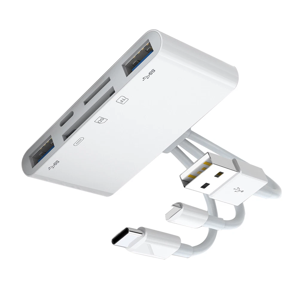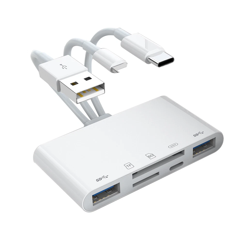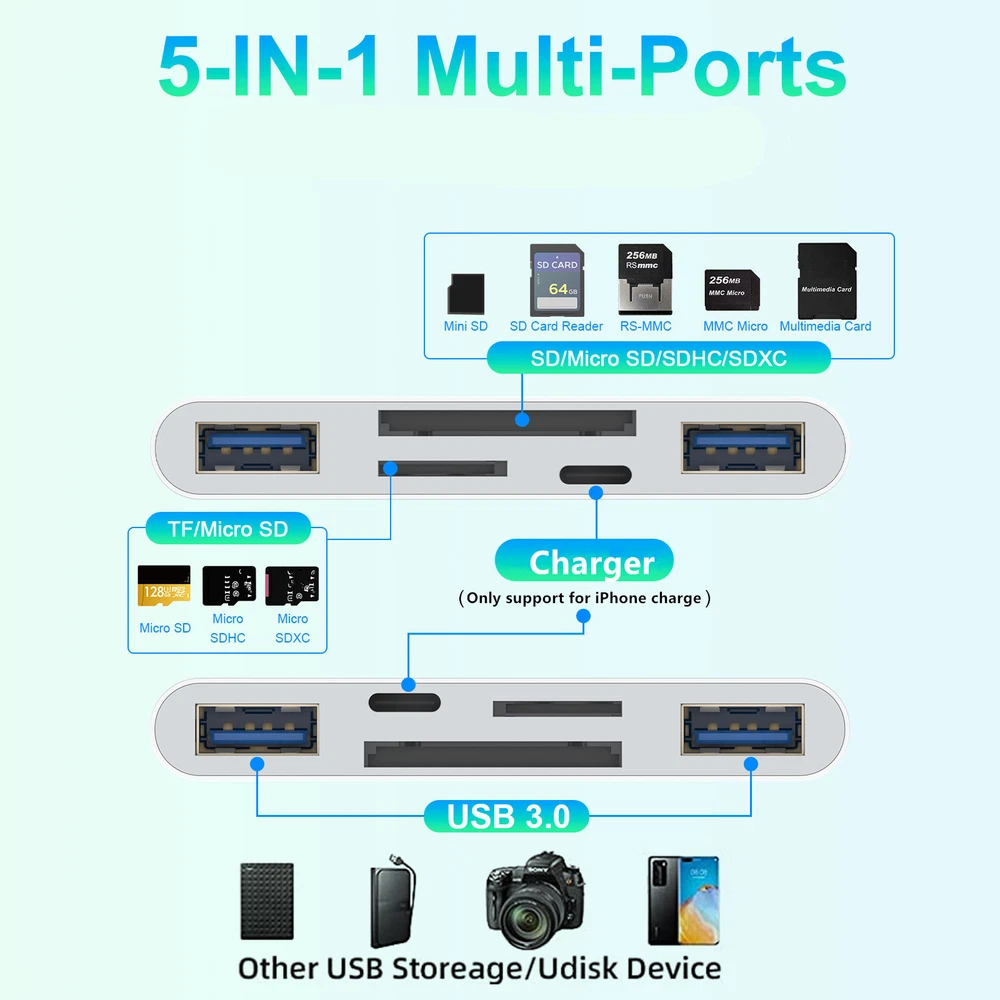 You may also like 10x Mini Gold Plated HDMI Male Plug Connector Copper 19Pin Straight Plug Socket 4.99 USD 4.99 USD For Type-C to Magsafe2 USB-C Fast Charging Power Adapter For Macbook Air/Pro new 5.99 USD 4.99 USD AC 110 220V 2000W High Power SCR Voltage Regulator Dimmer Motor Speed Controller 2.78 USD 4.99 USD SD to IDE 2.5 Inch 44Pin Adapter SDHC SDXC MMC Memory Card to 2.5" IDE Adapter R 10.99 USD 4.99 USD 1Pack Metal Belt Clip For Kenwood TK-208 TK-308 TH-22AT TH-42AT Two Way Radio b 1.99 USD 4.99 USD Smart Phone Universal 90 Degree Periscope Type Camera Extension Clip Accessory 14.59 USD Product Description Features: Plug and Play: memory card reader has various interfaces, no WIFI, network or drivers required, super easy to use. usb / usb c(type c) / for IOS Connector/ sd card slot / micro sd card slot and for iPhone charging port for iPhone/for iPad, easily transfer photo video and file information. Charging for iPhone/for iPad: Unlike other sd card adapters, our upgraded sd card reader has a charging port for iPhone/for iPad. Charging and reading can be carried out at the same time, so you no longer have to worry about the phone running out of power during the transfer process. Fast Transfer Speed: The high-speed two-way transfer from SD card reader can save you a lot of waiting time. allowing you to easily manage data between for iPhone/for iPad/ for Android / computer and other devices. Multi-function: It can connect more USB peripherals, such as camera, TV, USB flash drives, card reader, etc. You can connect your PC keyboard or mouse to your for iPhone/for iPad/PC via the USB camera adapter to Enjoy faster and easier chatting and typing while working. Wide Compatibility: The SD/TF card reader USB adapter supports standard photo formats, including JPER and RAW, as well as SD, HD video formats, and supports all for ios devices with for iOS 9.1 and above and OTG for Android phone/computer and other devices with USB port, The micro sd card reader supports up to 1TB memory cards and 512GB USB2.0 flash drives, the USB3.0 flash drives cannot exceed 128GB. Package include: 1* 5-in-1 Memory Card Reader About Us Payment Shipping Returns Contact Us Welcome to our store! Our aim is to offer our clients items with high quality and fast delivery, also our price will be reasonable. We supply many products including video game, health & beauty, phone accessories, computers accessories, camera & camcorder,car accessories, games, toys & hobbies, jewelry, antique & craftwork. Excellent customer service and a reliable credit standing is our tenet. We accept all verified payments from ebay. Orders will be shipped after receiving cleared payment. We ship most of our orders within 24 hours, and may up to 48 hours. If you want faster shipping way. Please contact us before making payment. Sometimes due to problems with our transportation company system, your shipping information may be delayed to update. We recommend that you try again after 3-4 days. If you still haven't checked the shipping information, you can contact us by ebay message. Always believe we can figure things out with communication, if it comes to return, the pacakge must be intact and the same as you receive. If you have any questions, please feel free to email our service specialists 24 Hours a Day, 7 Days a Week. We will reply you ASAP. Return/refund is accepted within 30 days after the buyer receives the item. NO exchange will be accepted after 30 days from the date when the item is received. Please contact us first before returning your product!!! If you have any questions, our Customer Service staffs welcome you to email us. We strive to answer all questions and resolve any problems as quickly as possible. We care about our valued customers, and will always try to help you. So if you have any problems, You can contact us 7*24, we will reply at the first time. About Us Welcome to our store! Our aim is to offer our clients items with high quality and fast delivery, also our price will be reasonable. We supply many products including video game, health & beauty, phone accessories, computers accessories, camera & camcorder,car accessories, games, toys & hobbies, jewelry, antique & craftwork. Excellent customer service and a reliable credit standing is our tenet. Payment We accept all verified payments from ebay. Orders will be shipped after receiving cleared payment. Shipping We ship most of our orders within 24 hours, and may up to 48 hours. If you want faster shipping way. Please contact us before making payment. Sometimes due to problems with our transportation company system, your shipping information may be delayed to update. We recommend that you try again after 3-4 days. If you still haven't checked the shipping information, you can contact us by ebay message. Returns Always believe we can figure things out with communication, if it comes to return, the pacakge must be intact and the same as you receive. If you have any questions, please feel free to email our service specialists 24 Hours a Day, 7 Days a Week. We will reply you ASAP. Return/refund is accepted within 30 days after the buyer receives the item. NO exchange will be accepted after 30 days from the date when the item is received. Please contact us first before returning your product!!! Contact Us If you have any questions, our Customer Service staffs welcome you to email us. We strive to answer all questions and resolve any problems as quickly as possible. We care about our valued customers, and will always try to help you. So if you have any problems, You can contact us 7*24, we will reply at the first time. Für Corsair Hydro H60 H80i H100i H110i GT Kühler Montagehalterung FM3 AM3 AM4 b 16.89 USD New ISA CGA 6845 Color Graphics Vintage Card Computer Accessories For IBM PC 40.89 USD 5V2A DIY Free Welding 3*18650 Battery Charger Power Bank Box Fast Charging Case 13.59 USD Lightweight Mouse Wireless Charging Receiver Module For Logitech G403 502 GPW 20.29 USD Adju