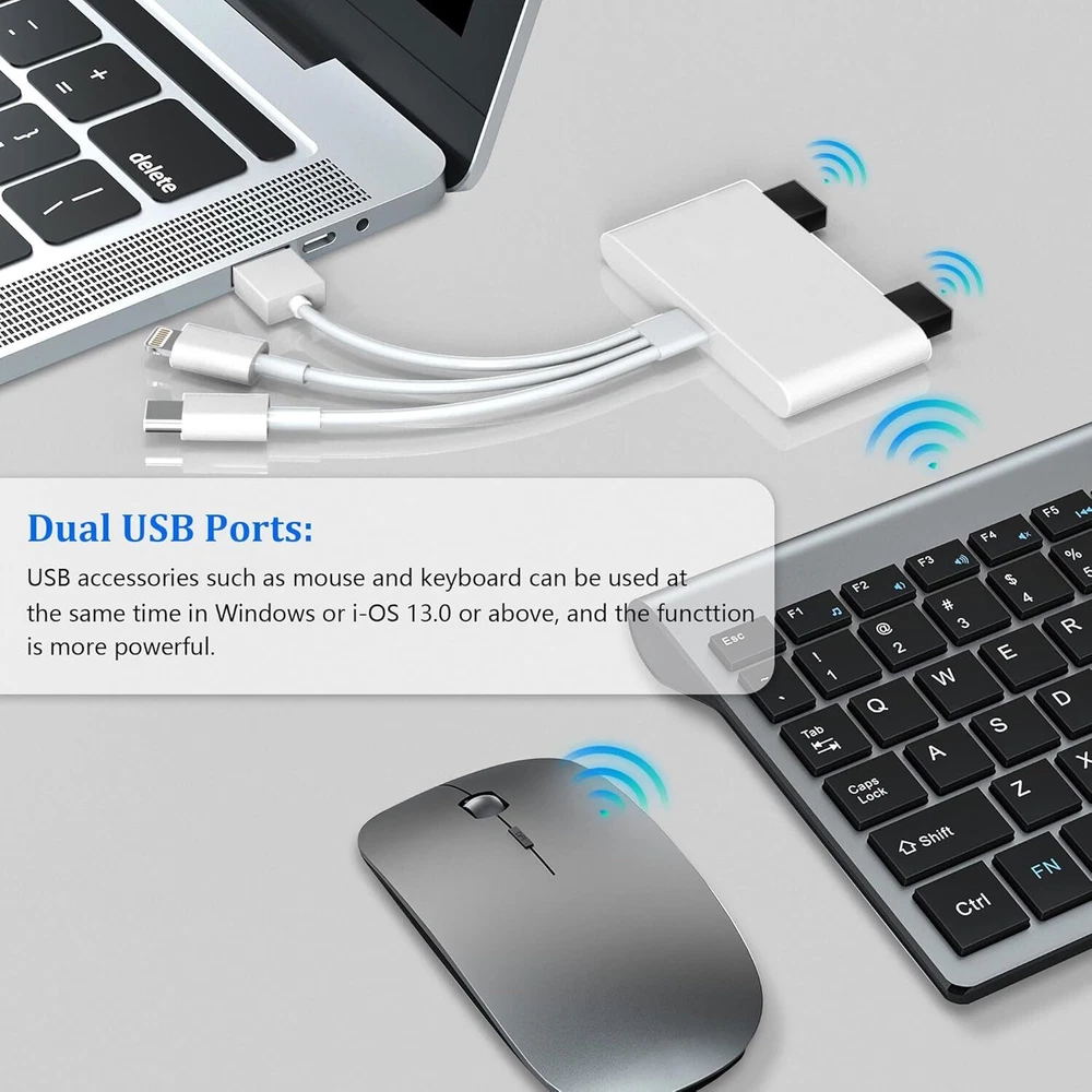 Features: Plug and Play: memory card reader has various interfaces, no WIFI, network or drivers required, super easy to use. usb / usb c(type c) / for IOS Connector/ sd card slot / micro sd card slot and for iPhone charging port for iPhone/for iPad, easily transfer photo video and file information. Charging for iPhone/for iPad: Unlike other sd card adapters, our upgraded sd card reader has a charging port for iPhone/for iPad. Charging and reading can be carried out at the same time, so you no longer have to worry about the phone running out of power during the transfer process. Fast Transfer Speed: The high-speed two-way transfer from SD card reader can save you a lot of waiting time. allowing you to easily manage data between for iPhone/for iPad/ for Android / computer and other devices. Multi-function: It can connect more USB peripherals, such as camera, TV, USB flash drives, card reader, etc. You can connect your PC keyboard or mouse to your for iPhone/for iPad/PC via the USB camera adapter to Enjoy faster and easier chatting and typing while working. Wide Compatibility: The SD/TF card reader USB adapter supports standard photo formats, including JPER and RAW, as well as SD, HD video formats, and supports all for ios devices with for iOS 9.1 and above and OTG for Android phone/computer and other devices with USB port, The micro sd card reader supports up to 1TB memory cards and 512GB USB2.0 flash drives, the USB3.0 flash drives cannot exceed 128GB. Package include: 1-100* 5-in-1 Memory Card Reader Buyer Note: If you are satisfied with our service, we appreciate you leaving us a positive feedback and 5 star rating review! Your opinion is important to the success of our business. If you are not satisfied with the product or have not received the product for more than 35 days, please contact us to resolve, we will do our best to solve. We are sure to come up with a satisfactory solution. Please contact us first before leaving cold feedback or good feedback of 1-3 stars and opening the case. We'll do our best to solve your problem. Because we believe that everything can be solved through communication. Thank you very much!