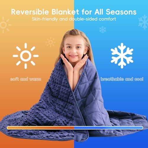 This weighted blanket is amazing for kids! The soft minky fabric feels cozy, and the perfect 5lb weight provides gentle comfort. Love the dual-sided design—cool in summer, warm in winter. Great size, super snug, and the blue color looks stylish. Super fast shipping and a trusted seller! Highly recommend!