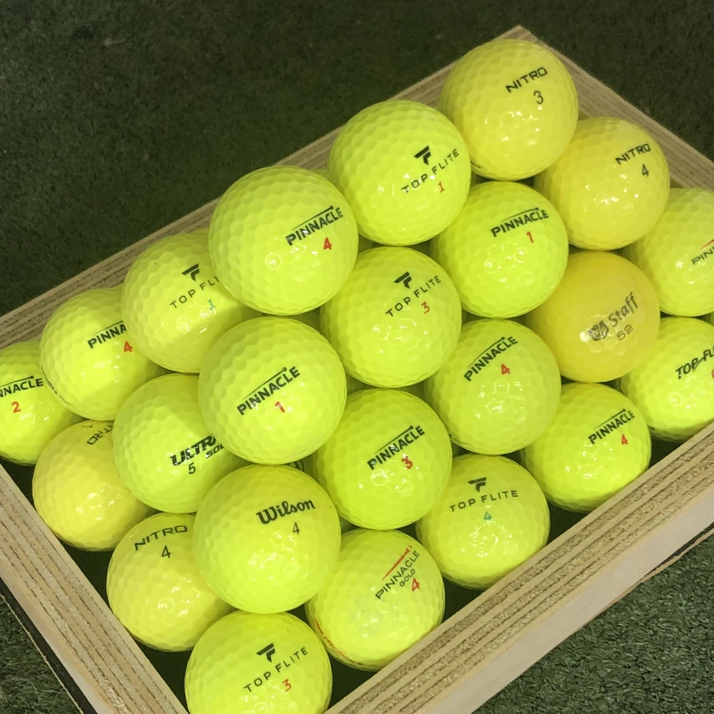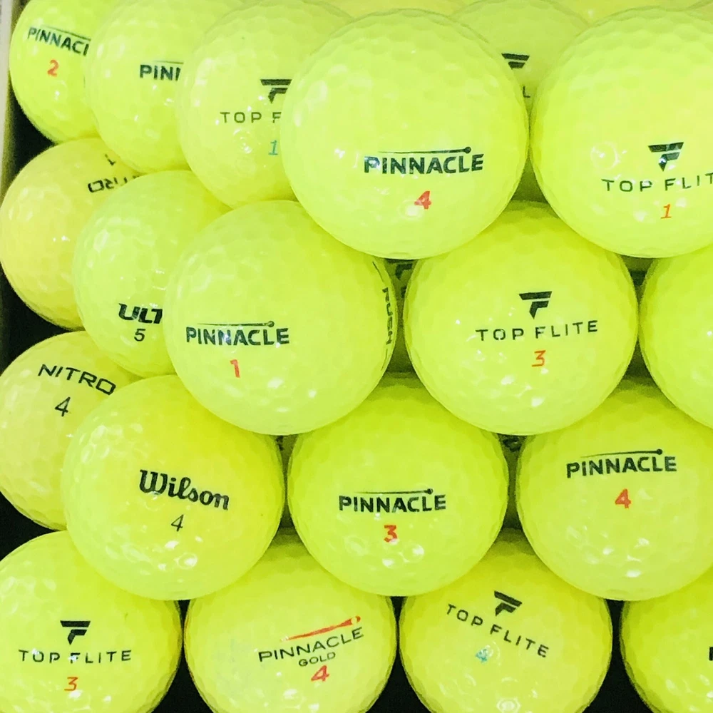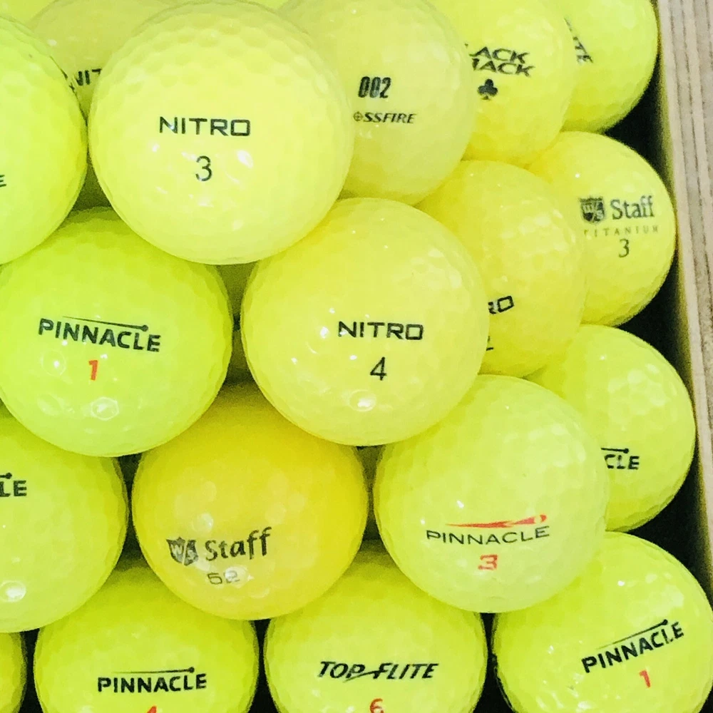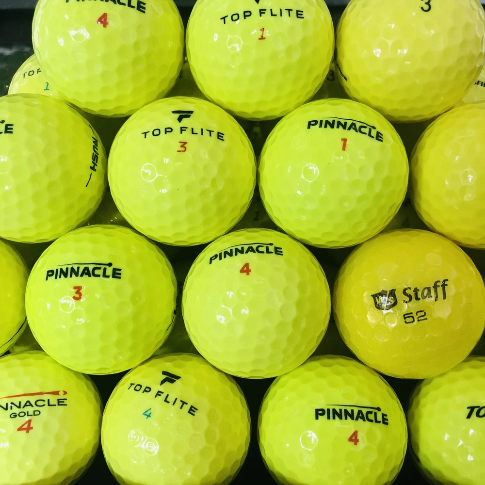 50 Assorted Yellow Mix Near Mint 5A/4A Used Golf Balls - FREE Shipping. Condition is Used. Shipped with USPS Priority Mail Padded Flat Rate Envelope. 5A/4A Grade - A mixture of golf balls in both 5A to 4A Condition. This Grade comprises of clean like new balls that have been hit once to golf balls with blemishes and imperfections in the 4A grade ranging from: discoloration, player markings, slight scuff marks and sharpie markings covering more than 6 dimples. No balls in this grade consist of balls that will alter in distance, flight path or trajectory. May include company and team logos. Does NOT include PRACTICE, X-OUTS, or Refinished golf balls.