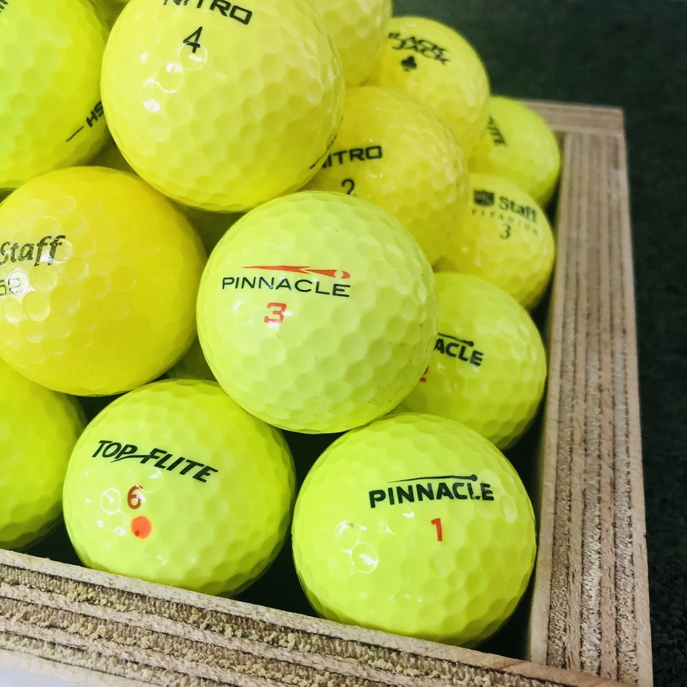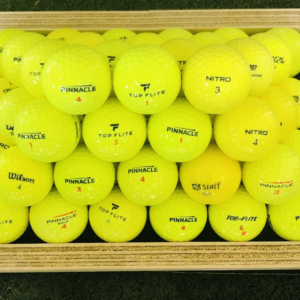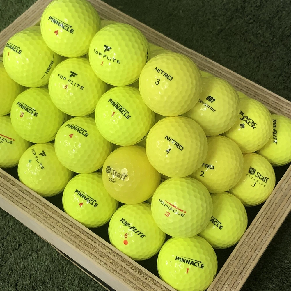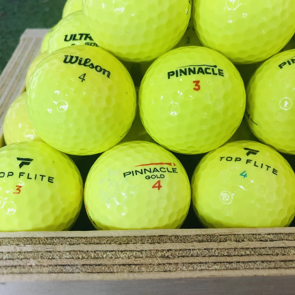 50 Assorted Yellow Mix Near Mint 5A/4A Used Golf Balls - FREE Shipping. Condition is Used. Shipped with USPS Priority Mail Padded Flat Rate Envelope. 5A/4A Grade - A mixture of golf balls in both 5A to 4A Condition. This Grade comprises of clean like new balls that have been hit once to golf balls with blemishes and imperfections in the 4A grade ranging from: discoloration, player markings, slight scuff marks and sharpie markings covering more than 6 dimples. No balls in this grade consist of balls that will alter in distance, flight path or trajectory. May include company and team logos. Does NOT include PRACTICE, X-OUTS, or Refinished golf balls.