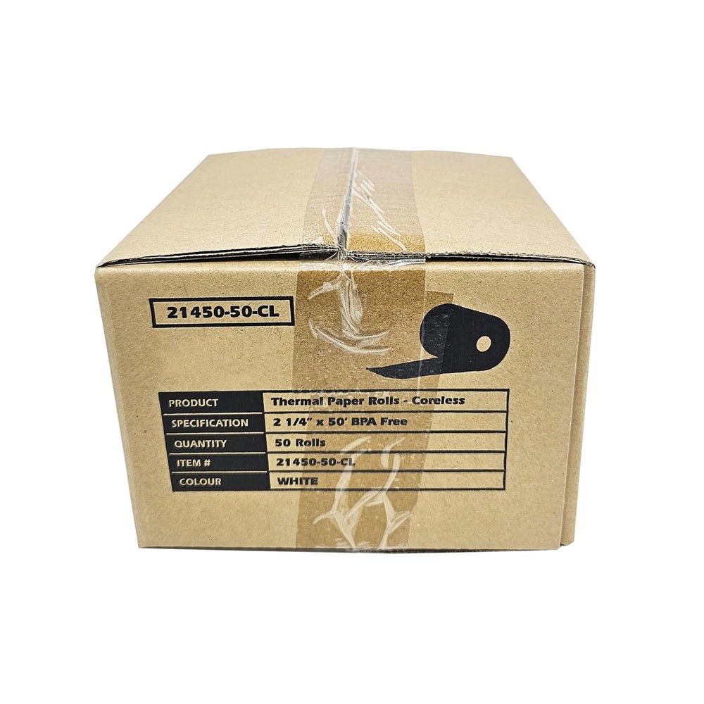 (50 Coreless Rolls) 2 1/4 x 50 Thermal Paper Receipt Rolls fits all Credit Card Terminals Verifone VX520 Ingenico ICT220 ICT250 BPA Free from